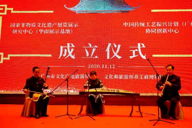 2020年11月12日,由文化和旅游部恭王府博物馆与广州市文化广电旅游局合作共建的“国家非物质文化遗产展览展示研究中心(华南展示基地)”和“中国传统工艺振兴计划(广州)协同创新中心”成立仪式在广州举行。两个国字号非遗中心的学术科研机构花落广州,标志着广州非遗保护工作迈上新台阶,也将进一步推动华南地区乃至全国非遗的传承发展。