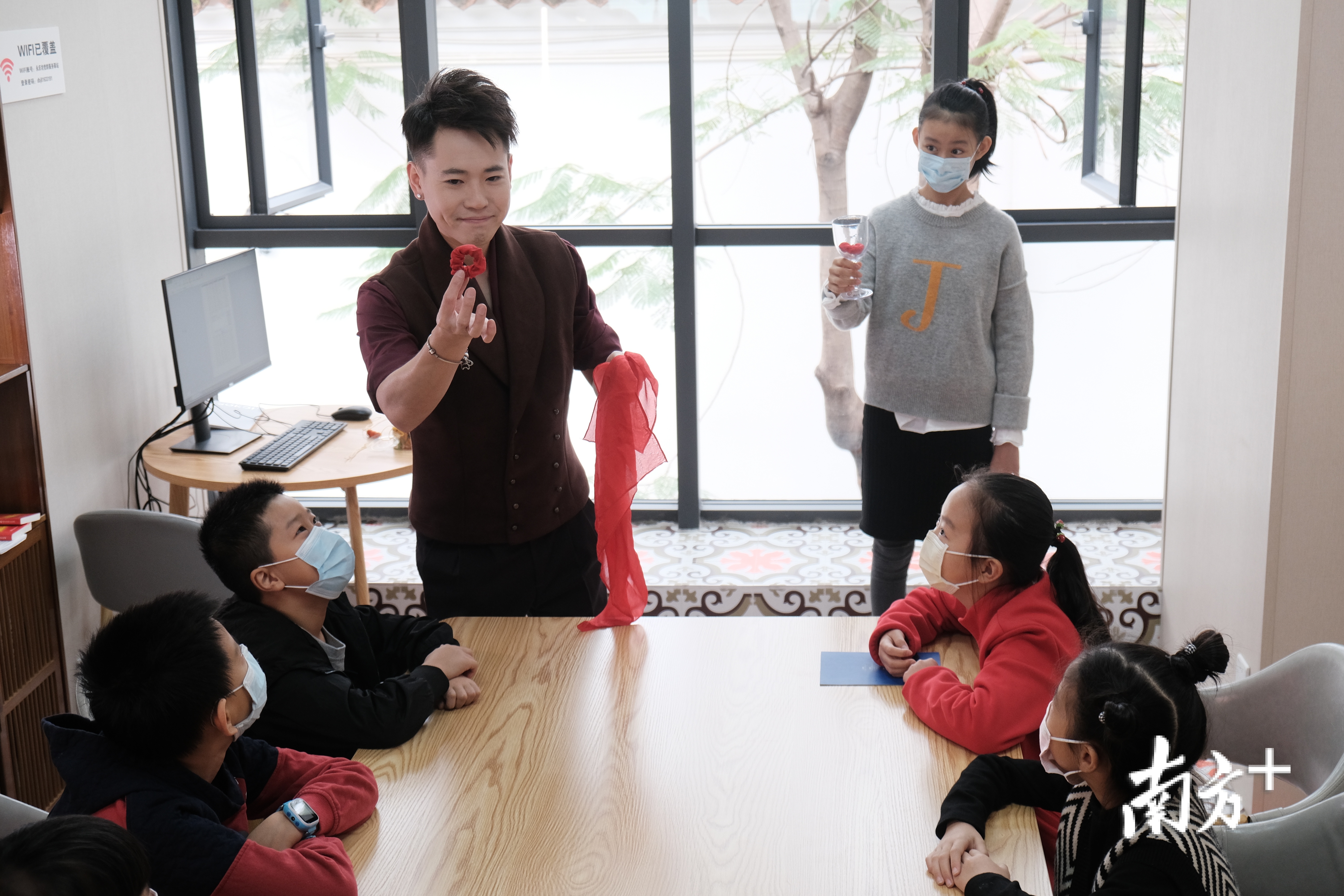 今天,永庆坊也化身魔法学校,让小朋友们来体验魔法的智慧与乐趣。在充分考虑青少年与家长两代间的兴趣融合后,本次“粤趣魔坊”特地开设了亲子“魔法学堂”,由三位魔术大师在永庆坊新时代文明实践站给荔湾区亲子家庭带来魔术公益课,让辖内青少年通过魔术领略西关,从而吸引更多人了解西关文化。青少年作为岭南文化重要传承者,肩负着文化传承的使命,同时,他们也有着独一无二的创造力。