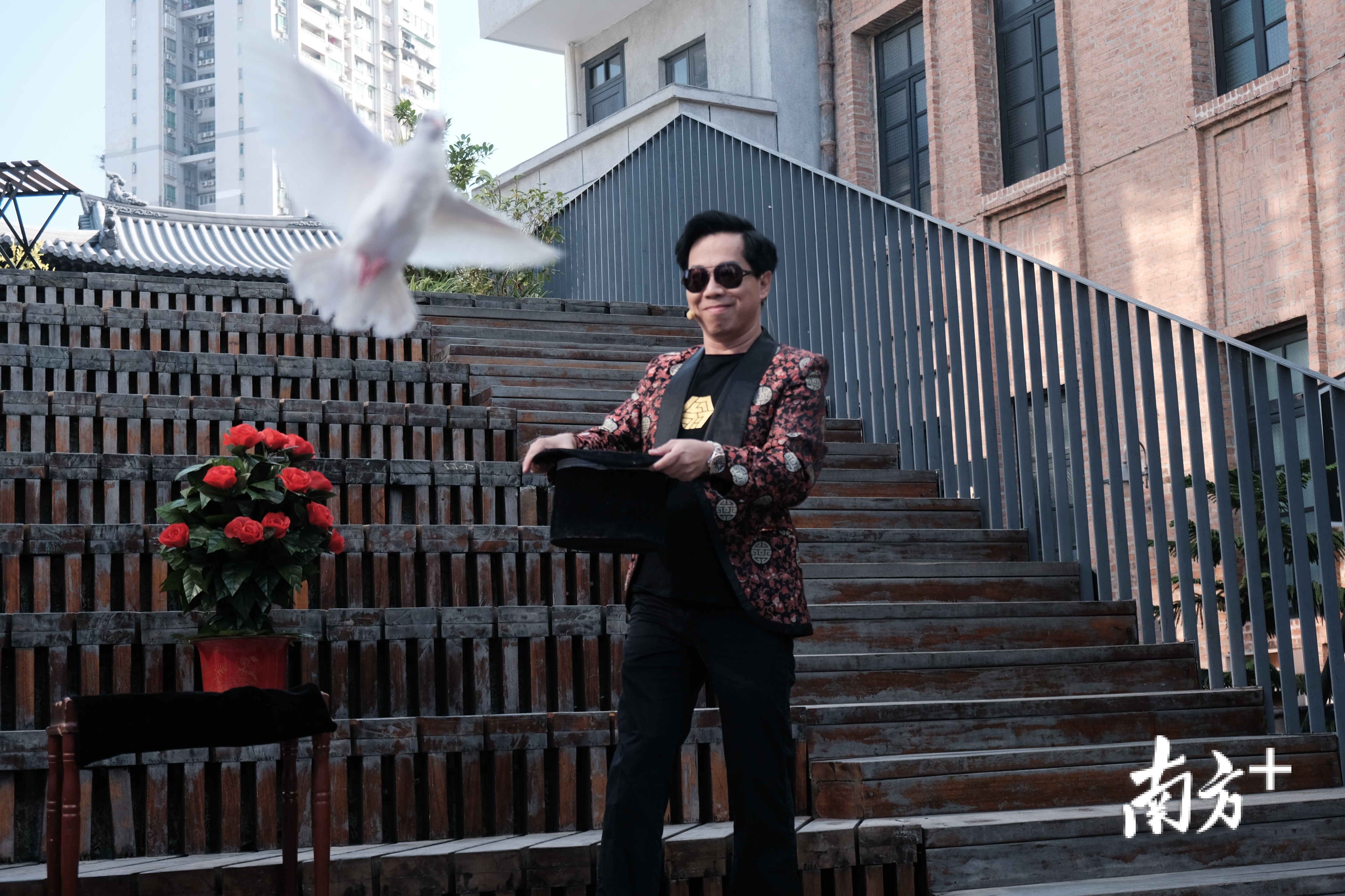 本次系列魔术表演由来自澳门的著名魔术师翁达智领衔,澳门翁氏魔术已成立30余年,曾在国际上屡获大奖,翁达智本人更曾三度获得世界魔术界最高荣誉“梅林奖”的殊荣。今天,翁达智回到老家永庆坊,在海内外积极传承岭南文化的翁达智,如今,回家为街坊们表演,他表示,多宝街的街坊们看到他仍旧感到很亲切。