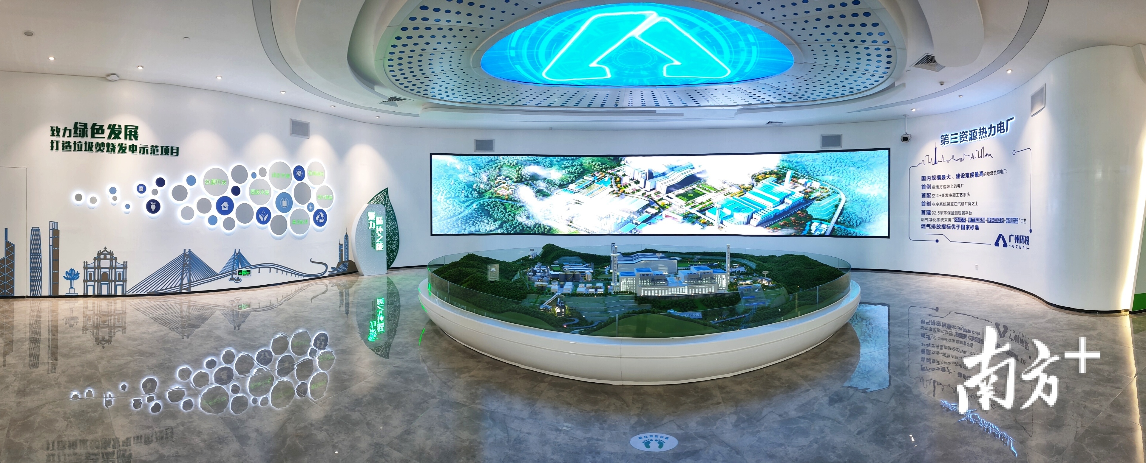 充满人文与创意的设计在园区中处处可见。置身观光塔中,人们可以在生态时光走廊中透过玻璃认知生产设备;也能边操控手柄边在游戏中参与垃圾分类问答;还能从焚烧发电大数据中了解全市垃圾焚烧发电的基本情况。目前,福山循环经济产业园可焚烧垃圾9300吨/日,是广州市七大循环经济产业园之一,也是国内规划处理规模最大的垃圾焚烧发电厂。