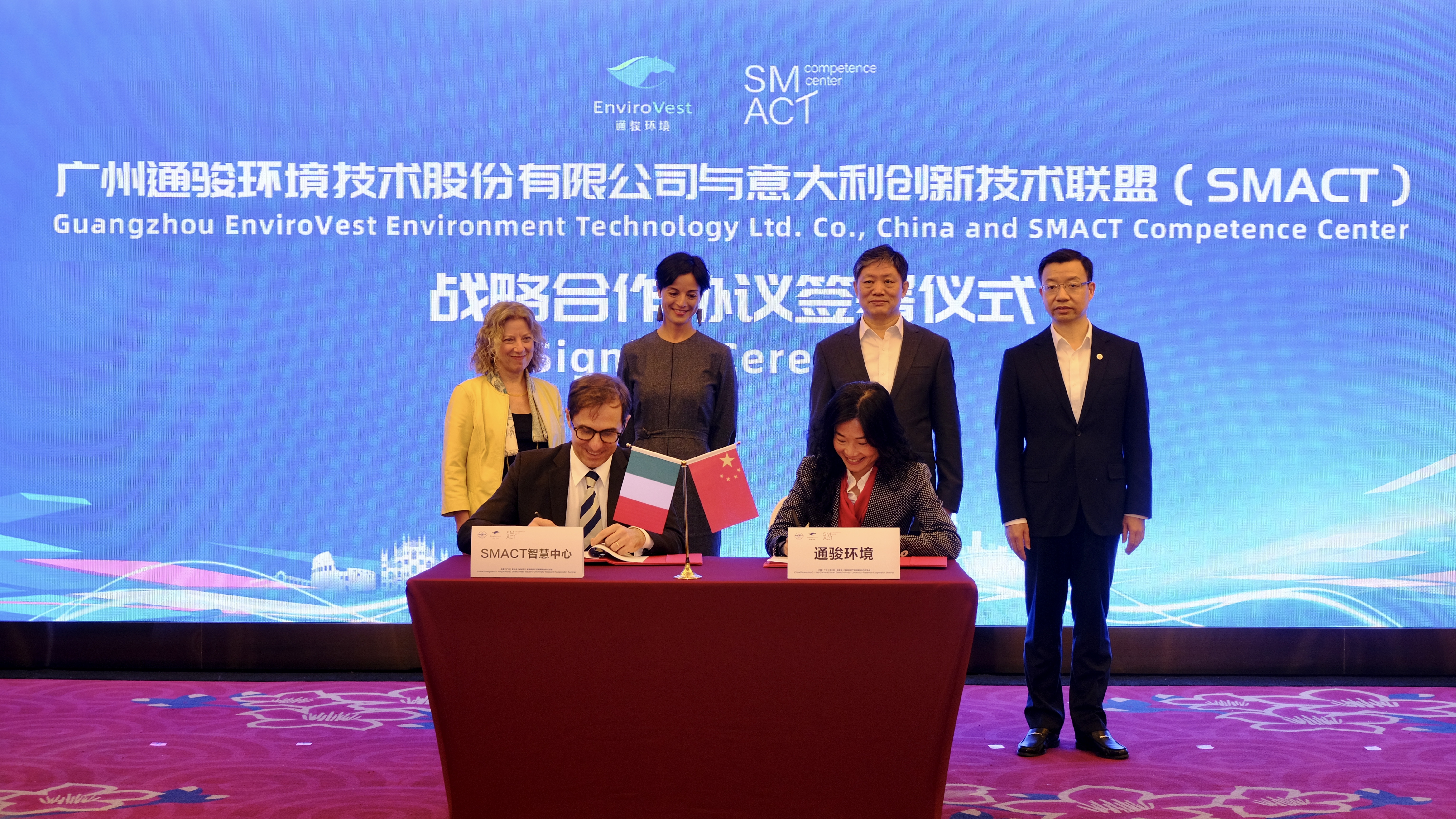 会上,广州通骏环境技术股份有限公司(下称“广州通骏公司”)与意大利创新技术联盟SMACT签署了智能环保技术产学研合作协议。这是中欧投资协定达成后,广州与欧洲在智能环保领域首个签署落地的投资合作协议,开创了从国内产业需求端到国际研发端、再到产业应用端的国际科技攻关模式。