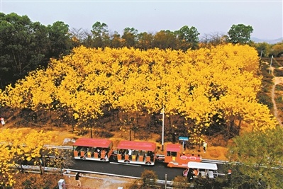 竹洞村“满城尽带黄金甲”的风铃花,蓝田村九曲河畔的300多亩油菜花,志惠农场1000亩宫粉紫荆花和100亩月季花,古树大道的十里苗圃盆景园……在“广州过年 花城看花”的主题下,赏花经济带热了赤坭乡村旅游,慕名而来的赏花者络绎不绝。据统计,春节期间花都区赤坭全域游人数突破22万人次,成为推动乡村经济发展和乡村振兴新引擎。