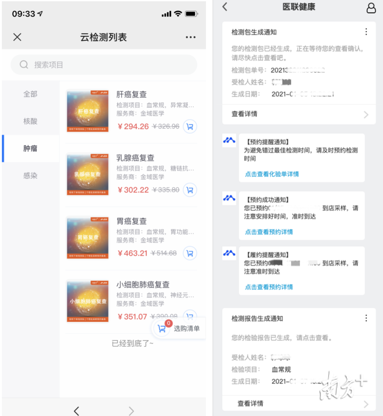 黎欣找到其主治医生反馈了该问题,医生建议她可通过医联预约检测服务。根据她的既往病史和诊断,医生指导其线上预约金域医学的检测服务,顺利在采样点进行采血,完成了复查。