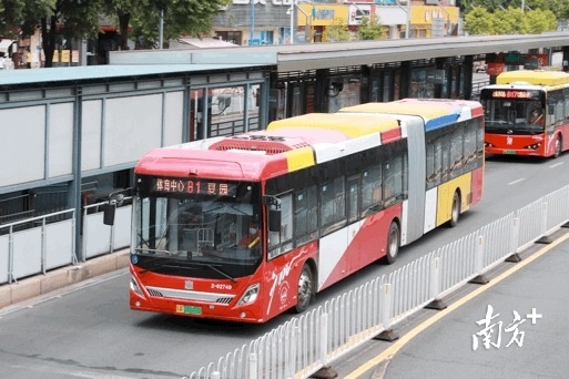 身披“七巧板”外衣的18米纯电动公交车自2020年7月起每天穿梭在中山大道BRT试验线。
