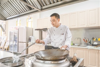 在不断的学习和交流中,这位“老厨师”的厨艺有了很大提升,他还更新了所在餐厅的菜单。如今他做菜不仅讲究食材鲜、味道好,还讲究分量精准、摆盘精美,一勺还是一小勺,先放盐还是先放糖,彩椒切条还是切圈,统统都有讲究。一盘菜捧上桌,客人都竖起大拇指,夸赞不亚于大酒店的水平。更新的菜式和味道也受到了客人的欢迎,“如今,餐厅的口碑提升了,客流量也增加了两三成。”