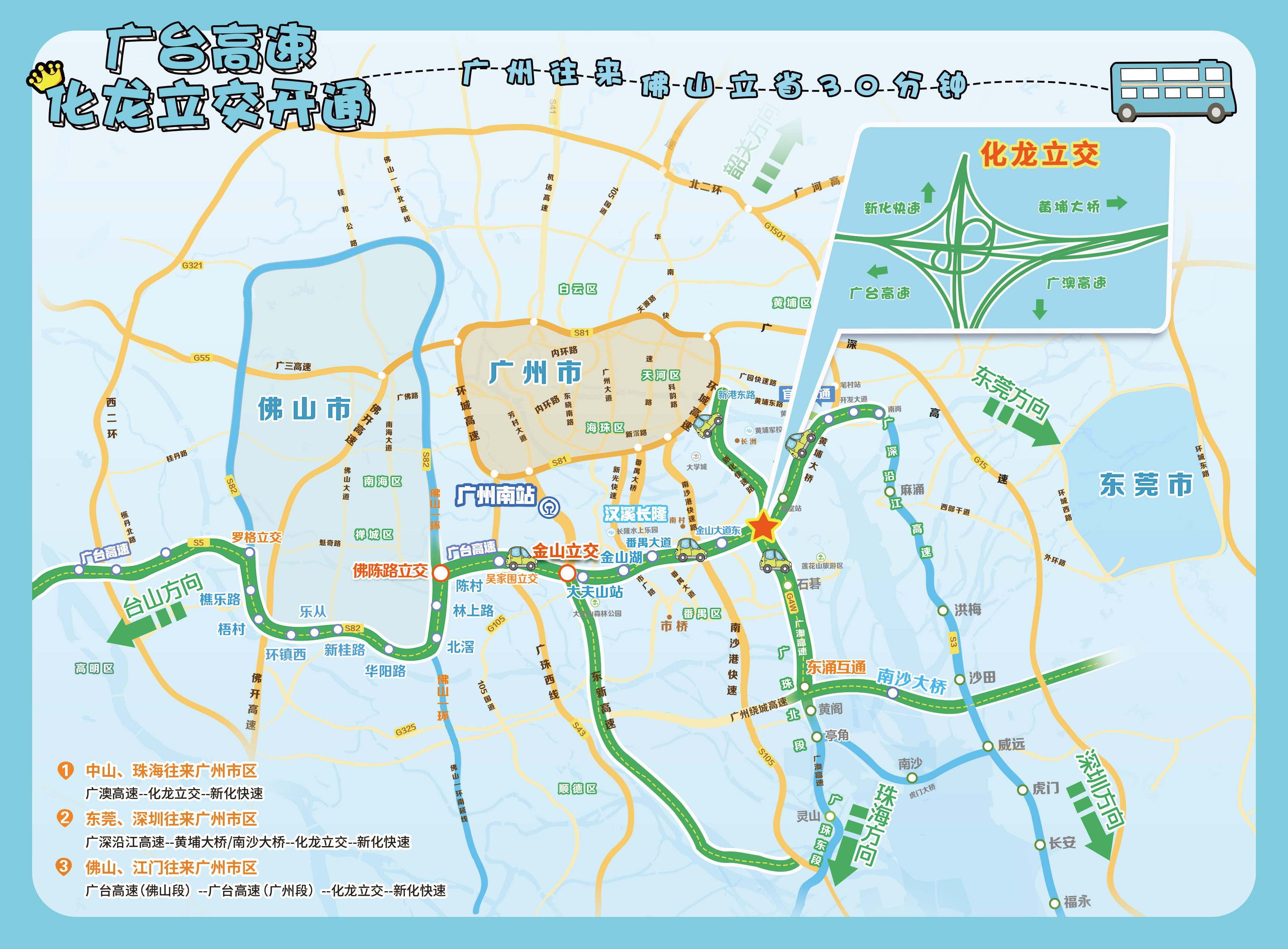 7月10日上午,广州交投投资建设的广台高速广州段化龙互通最后4条匝道正式开通,标志着该互通全面建成通车,距离项目全部建成更近一步。