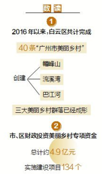群众的家在哪,美丽乡村就建到哪。广州市白云区坚持为民办事,问计于民,大力推动岭南特色生态宜居美丽乡村建设,2016年以来共计完成40条“广州市美丽乡村”创建,并串点成线、连线成片建成帽峰山、流溪湾、巴江河美丽乡村群,白云区美丽乡村实现“外在美”“内在美”共同提升。