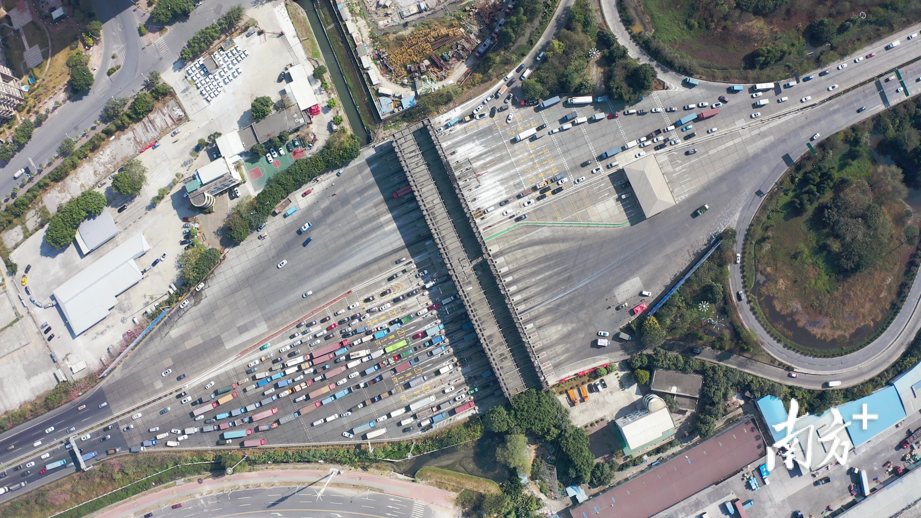 与其他收费站在出口“治堵”不同,广州环城高速的浔峰洲收费站在入口处,针对货车治堵。