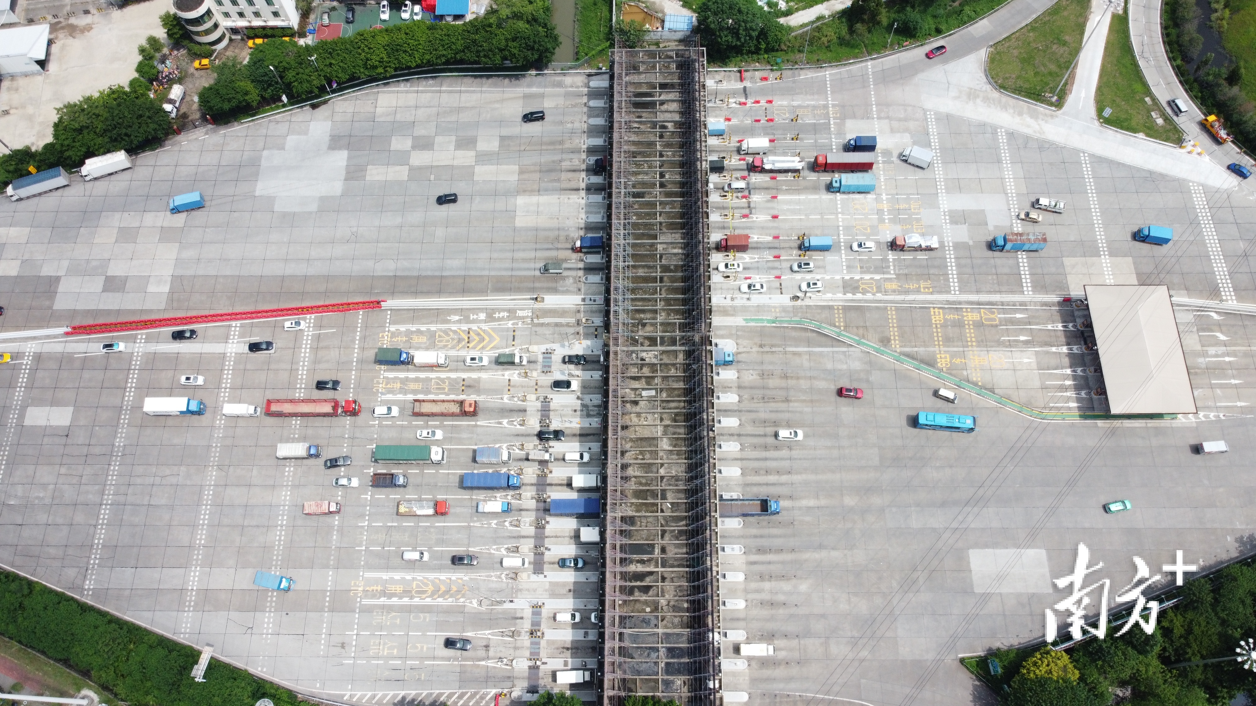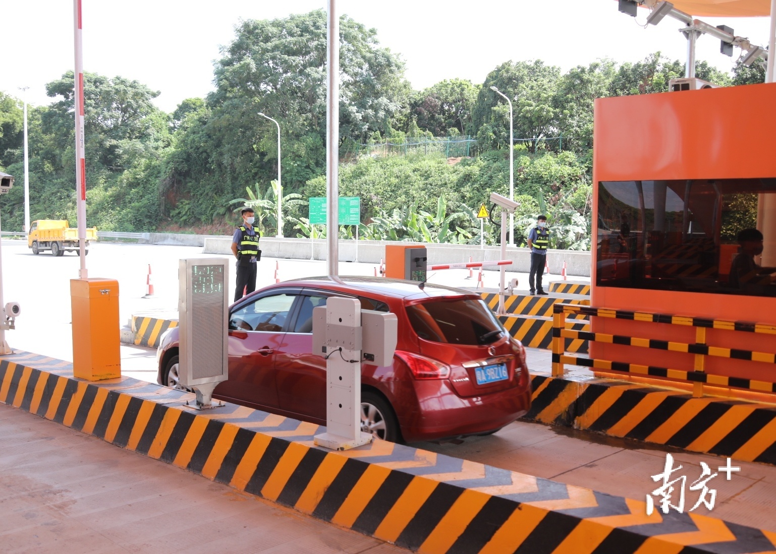 在广台高速番禺大道收费站,通过扩建增加车道、高峰借道行驶,原先的高峰拥堵情况得到了缓解。