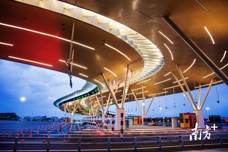 机场高速主线收费站在满足通行需求的基础上,造型设计融入古典元素,将传统美学与现代科技充分结合,以全新的城市门户形象凸显了广州市历史传统底蕴与现代化建设交融映衬的城市特征。