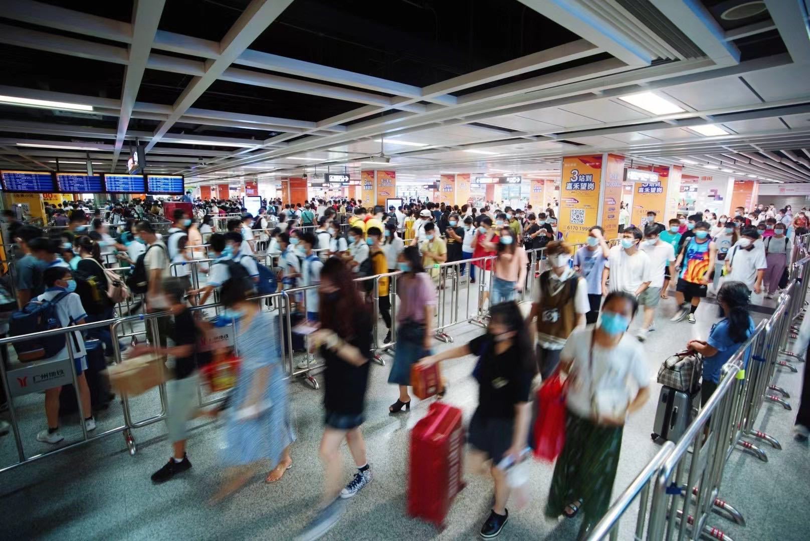 广州地铁提醒,随着返程客流增多,请广大市民乘客合理规划出行时间和路线,携带大件行李的乘客请尽量使用专用电梯,上车后行李勿堆放在车门处,以免阻塞上下车通道,如需帮助可及时联系车站工作人员。同时在当前常态化疫情防控形势下,搭乘地铁时请主动配合进站亮码及测温,全程佩戴好口罩,做好个人防护不放松。