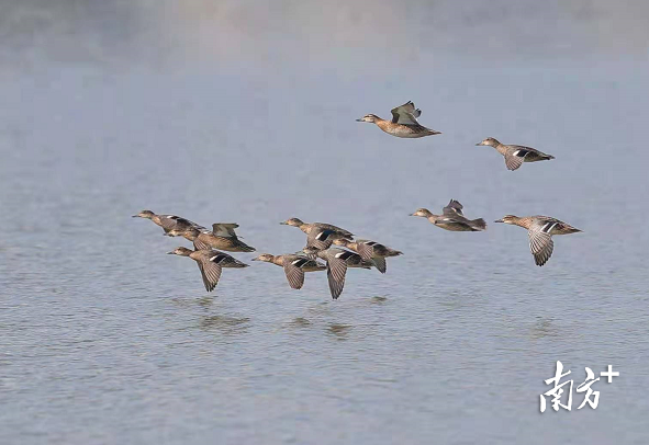 2020年4月首次现身海珠湖的白眉鸭,2021年10月19日被拍到成群结队回到海珠湖。(首次记录/拍摄:陈克军)