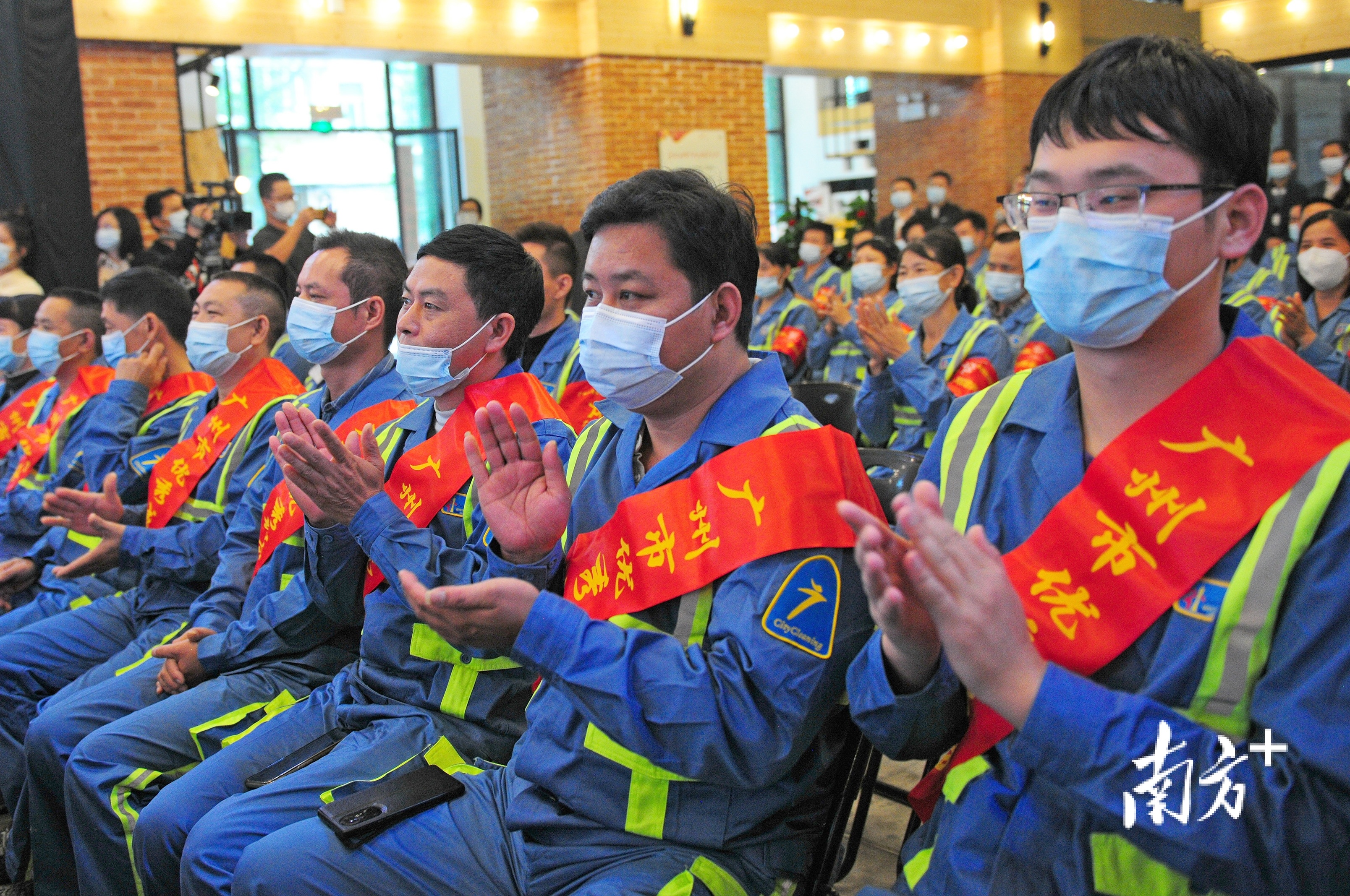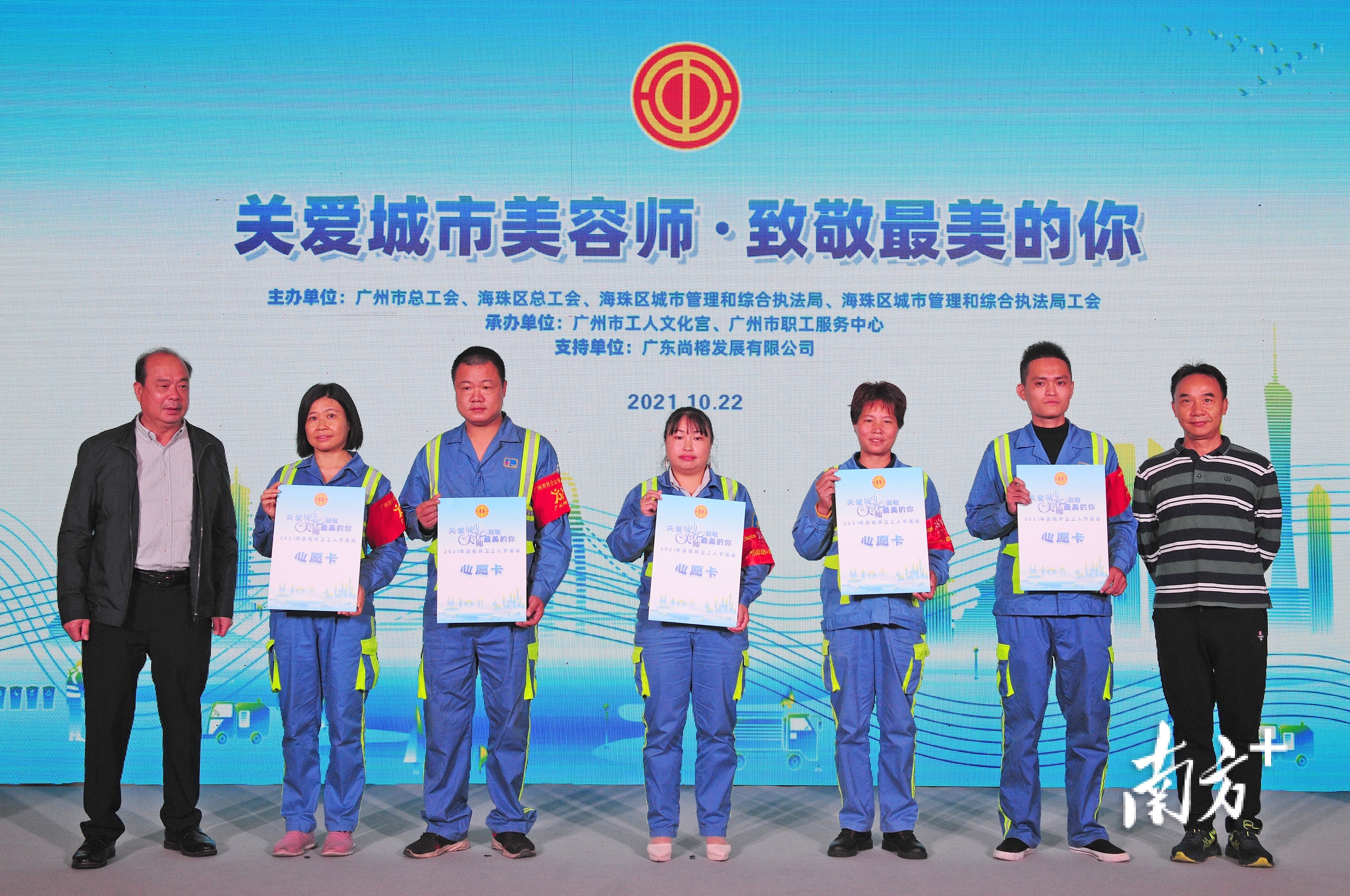 每年的10月26日是广州市环卫工人节,在第34个环卫工人节来临之际,10月22日上午10点,“关爱城市美容师·致敬最美的你”庆祝2021年环卫工人节活动在海珠区环卫工人之家举行。活动上,一批优秀环卫工人受到表彰,首批10名环卫工人代表领到了他们的“微心愿”礼包。表彰活动结束后,还为参加活动的环卫工人们准备义诊义剪、益趣互动游戏。