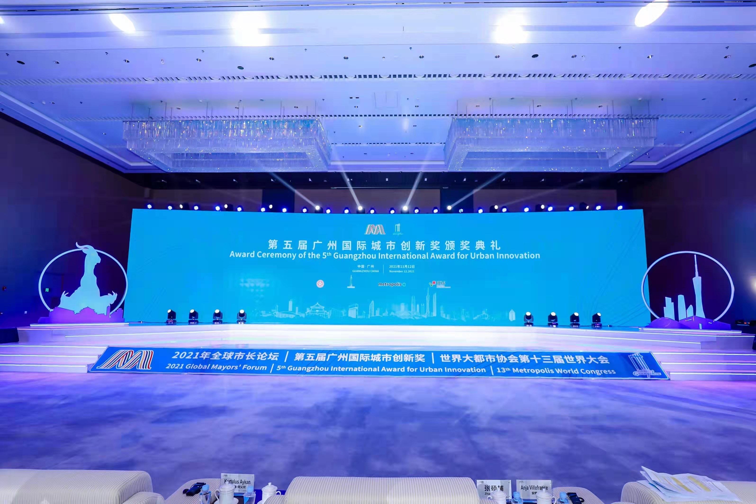 11月12日晚,第五届广州国际城市创新奖(简称“广州奖”)颁奖典礼暨2021年全球市长论坛及世界大都市协会第十三届世界大会闭幕式在广州越秀国际会议中心以线上线下融合方式举行。