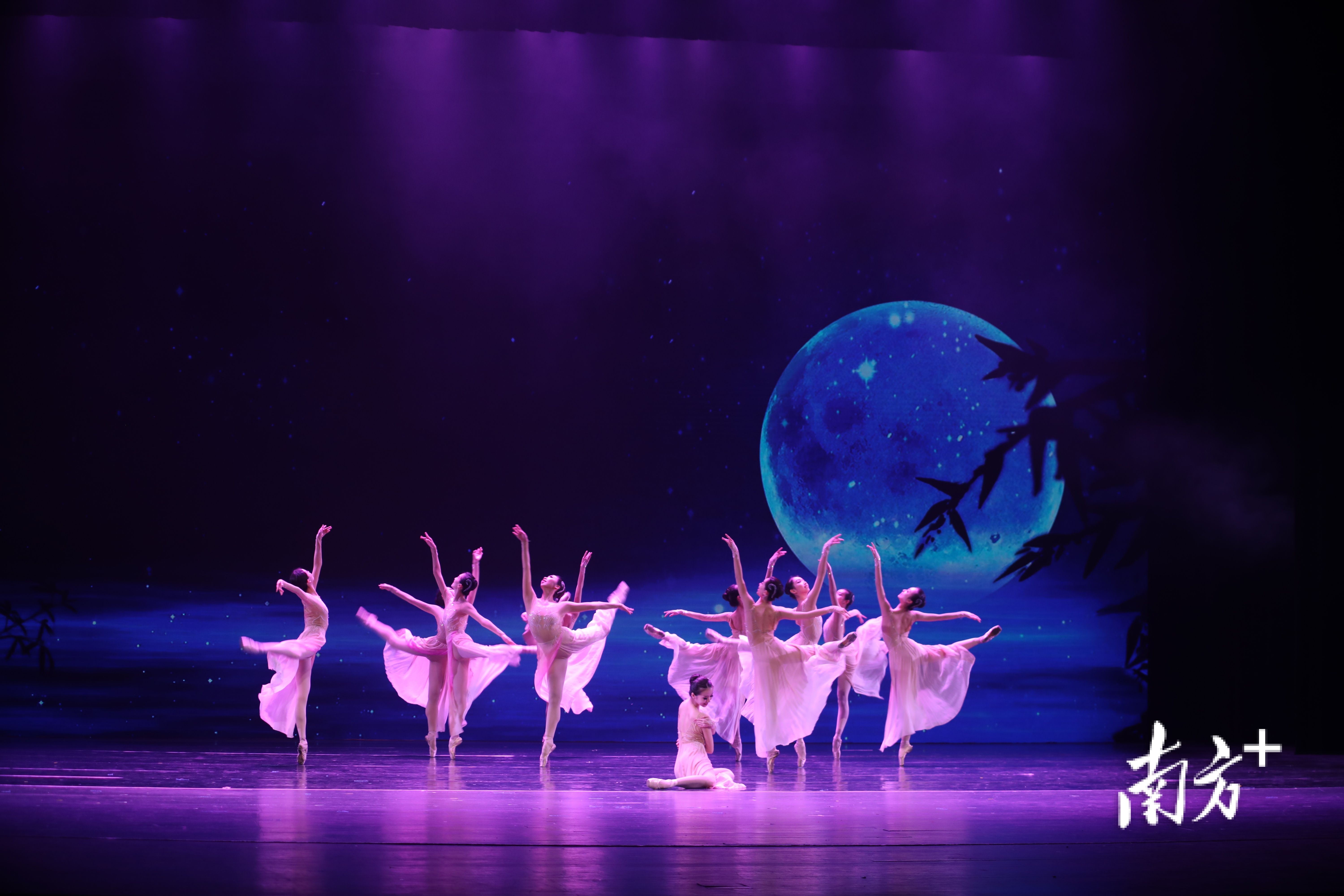 当晚,由广州芭蕾文化艺术有限公司表演的芭蕾舞《彩云追月》将芭蕾与广东音乐有机结合,抒情地描绘出人民轻松写意的生活场景。