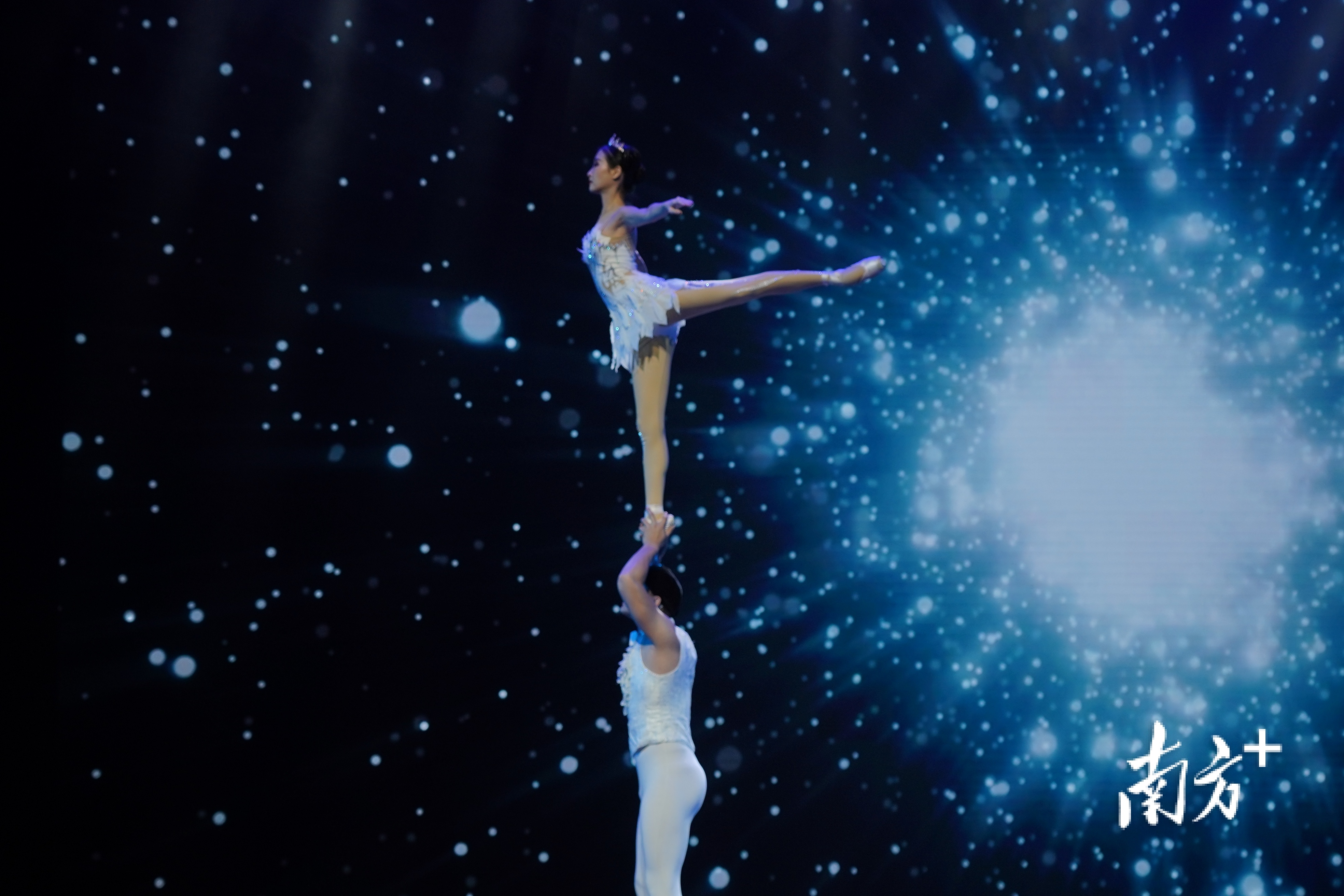 当晚,广州市杂技艺术剧与广州歌舞剧院歌手万乘齐合作的杂技与歌曲《you raise me up》,将惊险优美的“肩上芭蕾”与鼓舞人心的英文歌曲《you raise me up》相结合,传递出花城广州奋发向上、自强不息的精神。