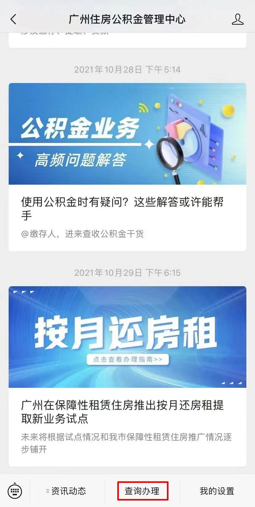 有需要的市民可以关注“广州住房公积金管理中心”微信公众号,在微信公众号上便可以轻松操作: