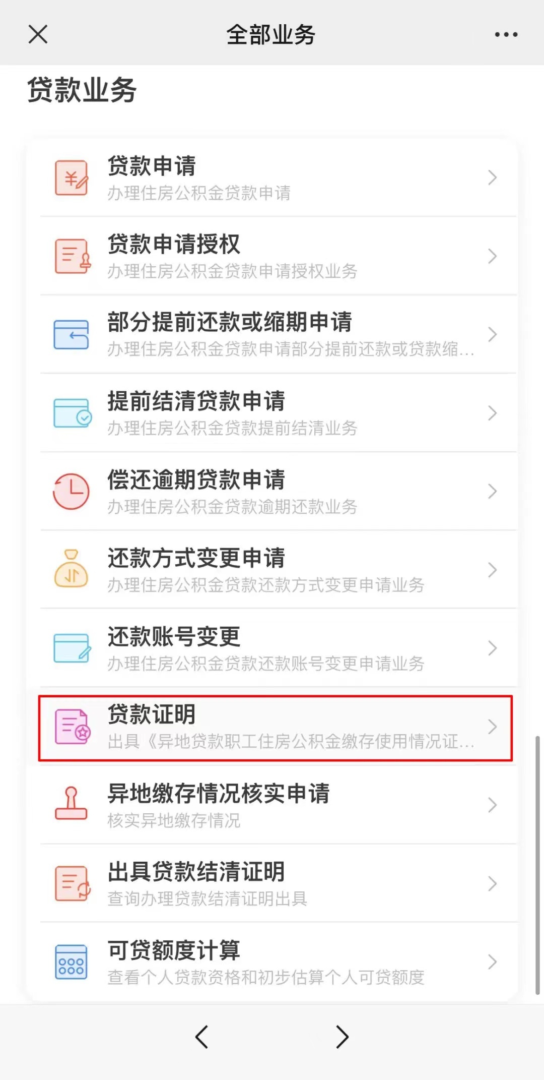 首先,点击菜单栏“查询办理”→登录后选择“贷款业务”→点击“贷款证明”→点击“异地贷款证明出具”→正确填写相关信息→最后,再点击“出具”即可查询打印加盖电子印章的《异地贷款职工住房公积金缴存使用证明》以及近两年缴存明细。