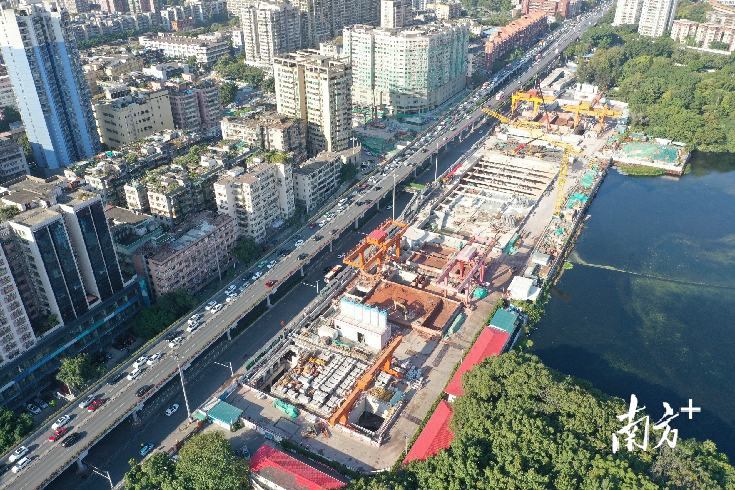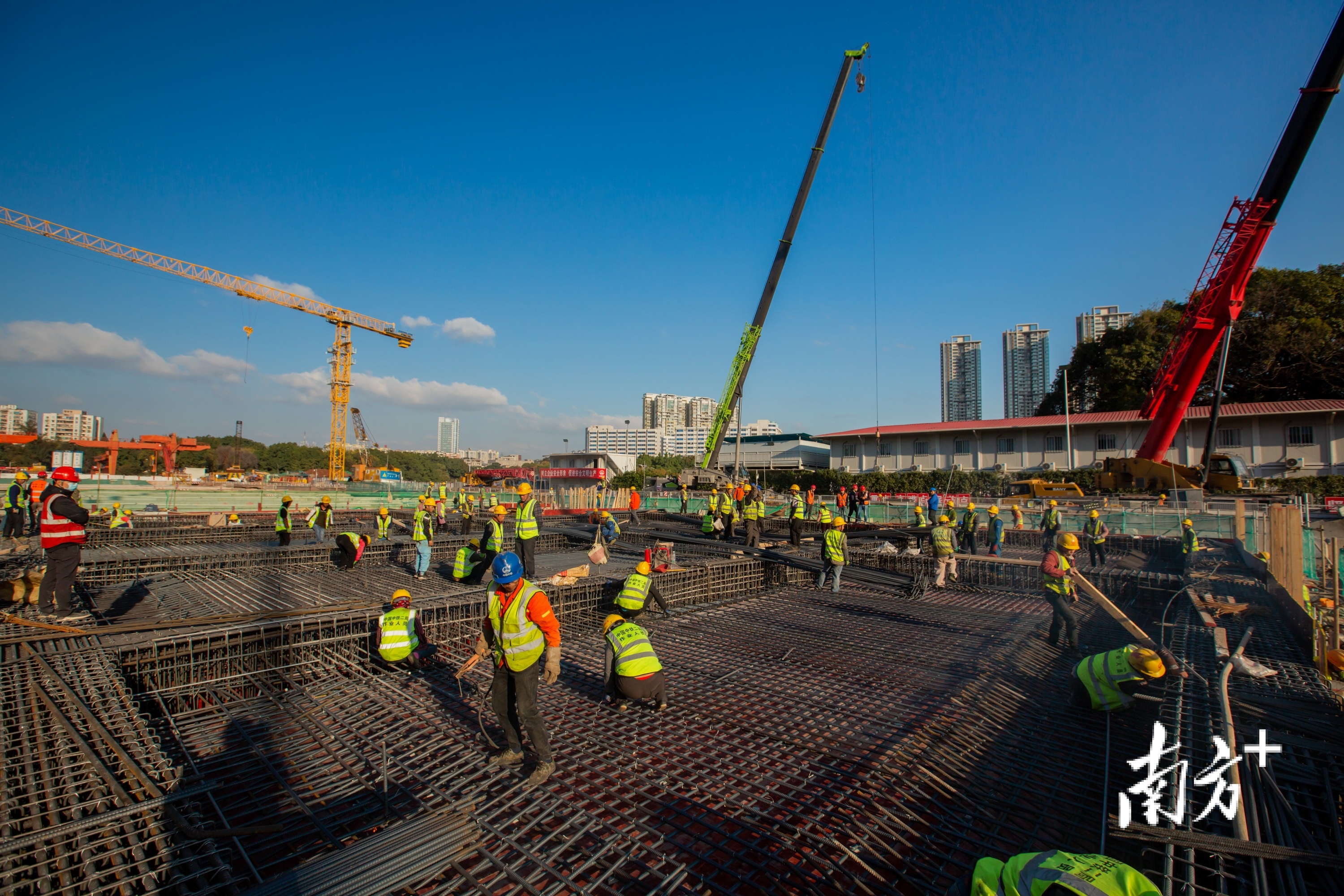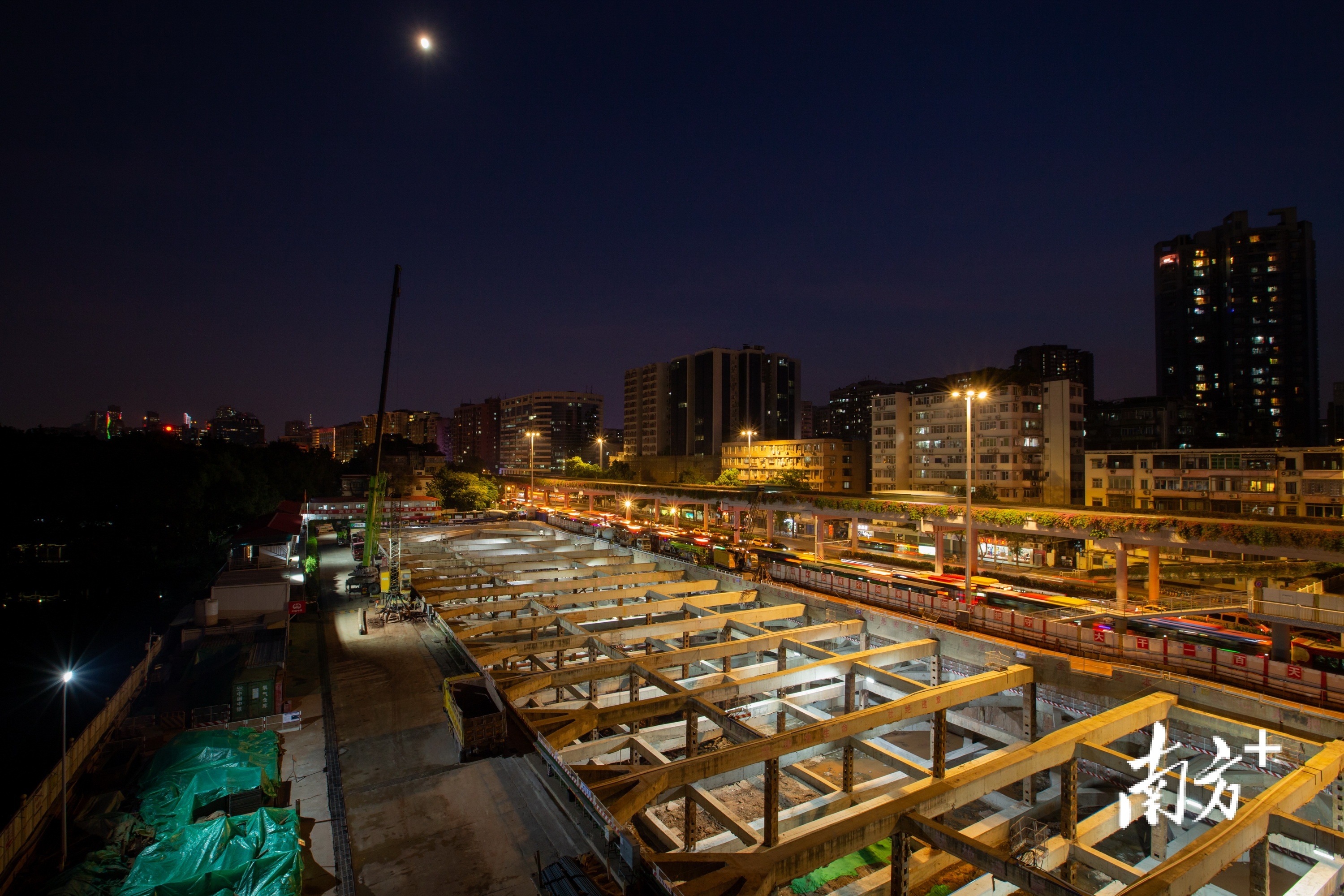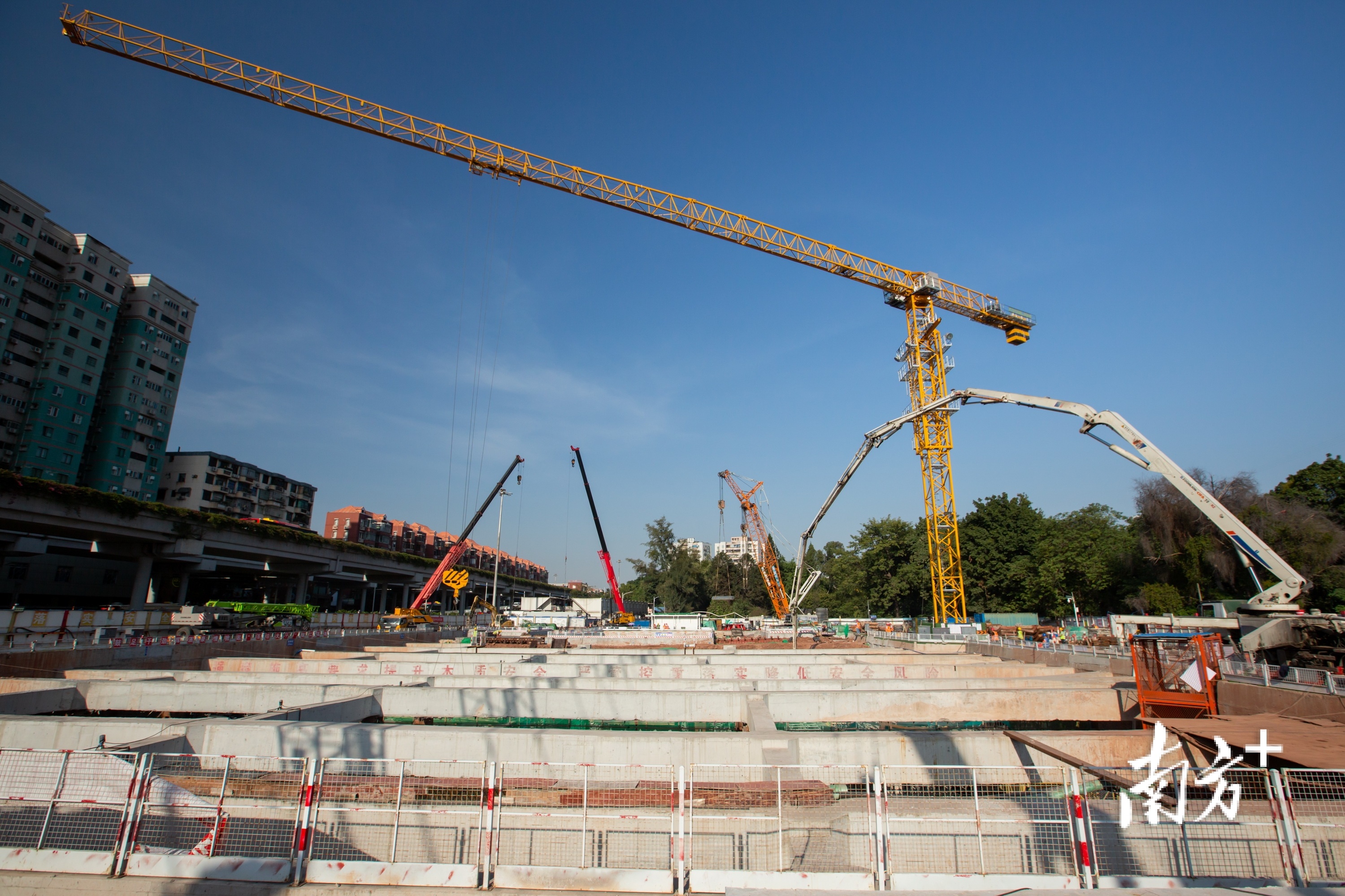 作为广州地铁首个与主变电站同步建设的地下车站,在施工过程中,建设者们也面临着前所未有的挑战。由于车站与主变电站各楼层高度不同,结构板交错连接,施工工序复杂、施工周期长,大大提高了车站整体的施工难度,安全风险高。