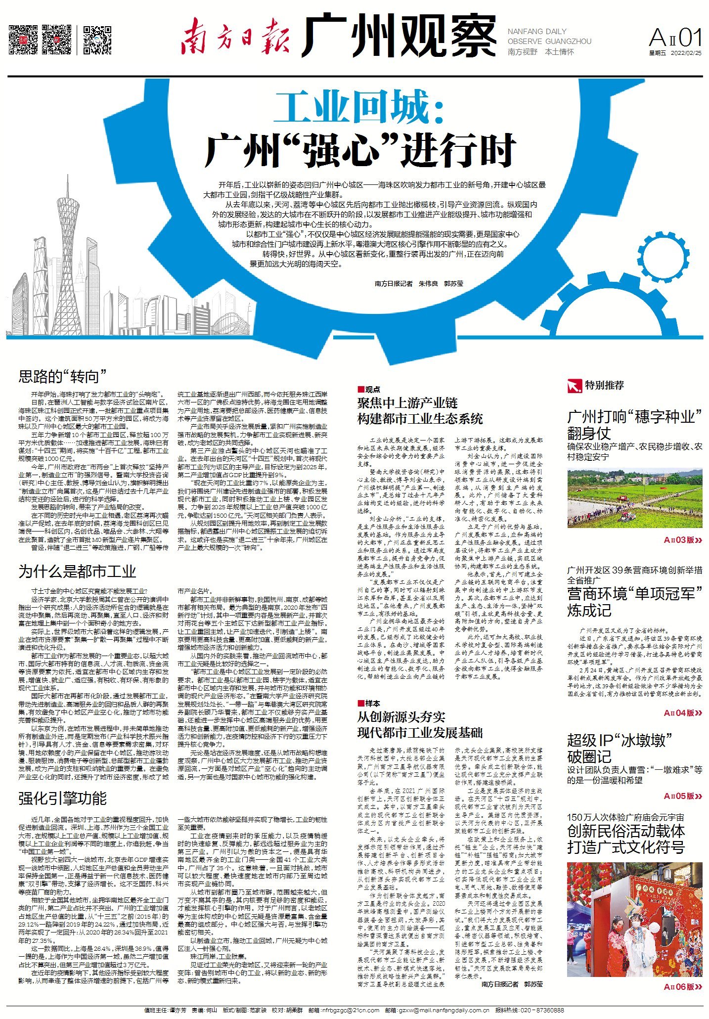 以都市工业“强心”,不仅仅是中心城区经济发展赋能提能强能的现实需要,更是国家中心城市和综合性门户城市建设再上新水平,粤港澳大湾区核心引擎作用不断彰显的应有之义。