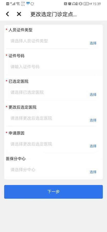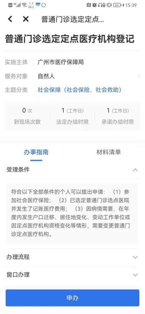 第二步:选择“选定门诊定点医疗机构更改”,点击“申办”。