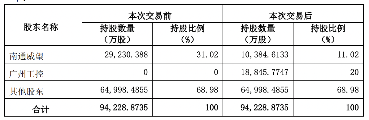 2021年1至6月份,润邦股份的营业收入构成为:通用设备制造业占比71.43%,节能环保行业占比24.29%,其他行业占比4.27%。广州工控于2021年10月29日与江苏润邦重工股份有限公司(下称“润邦股份”)原控股股东南通威望正式签署股份转让协议。