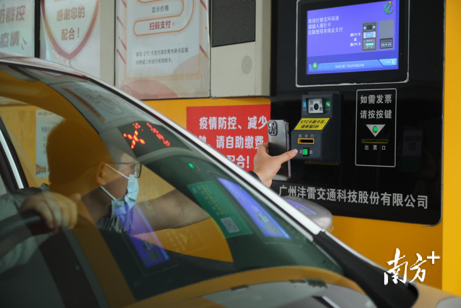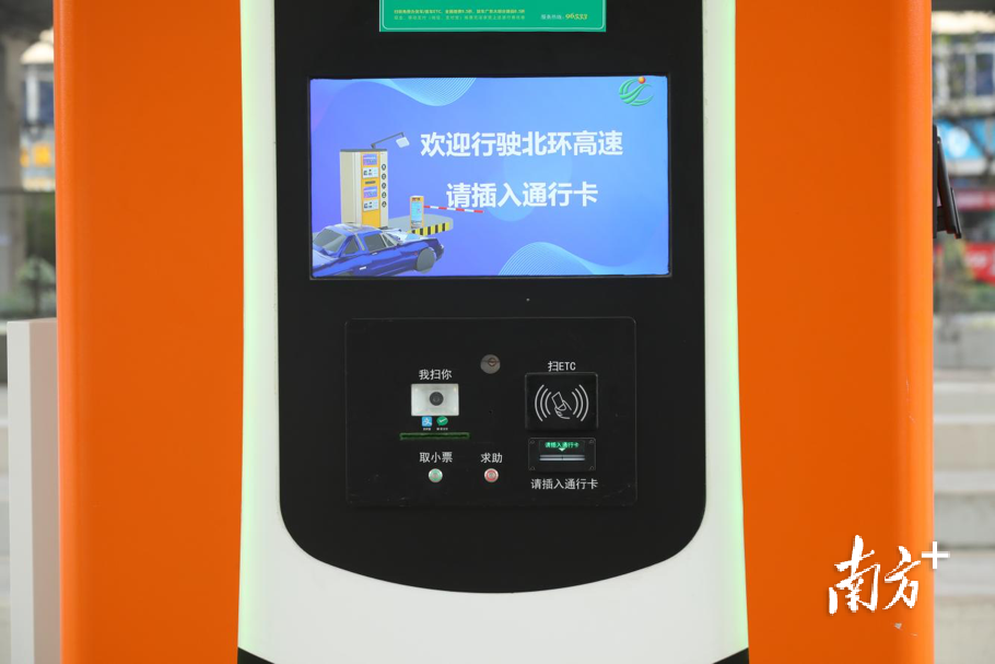 驶入广州北环高速广从收费站入口处,以往的收费亭被一个个黄色的箱体代替,当汽车驶近时,高速通行卡已经吐出,司机2秒便能取走驶离。出口处,司机将通行卡插入机器,扫码支付后迅速离开。