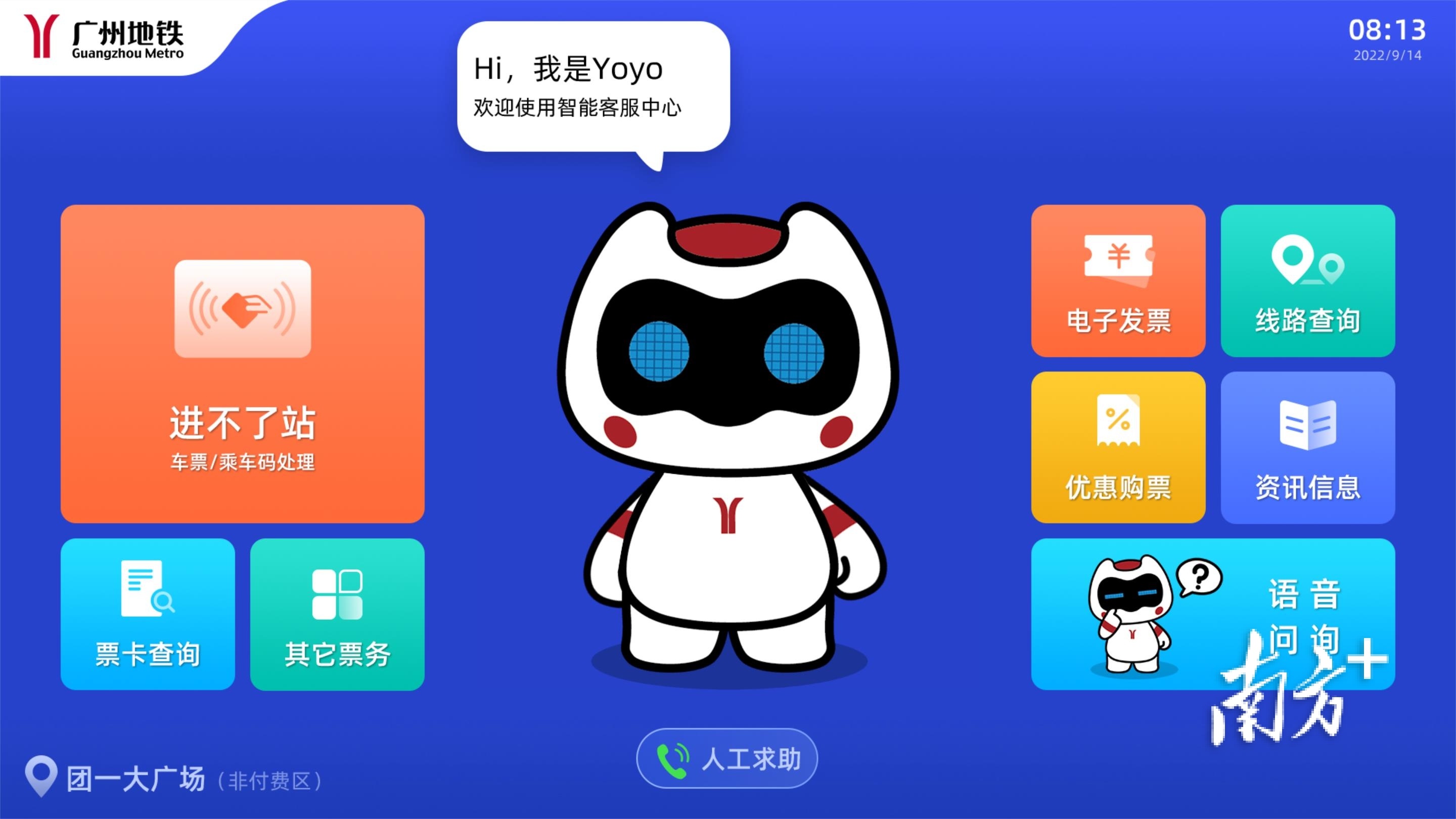 语音交互随时与客服机器人对话。智能客服中心同时支持乘客通过语音问询、屏幕点选等方式,与智能机器人“Yoyo”进行互动,自助查询线路、换乘、票价、车站布局等相关出行资讯,即便工作人员不在身边也能快速掌握出行信息。如遇到系统无法查询的情况,还可通过屏幕上方的“人工求助”按钮,一键点击即可连线人工客服寻求帮助。
