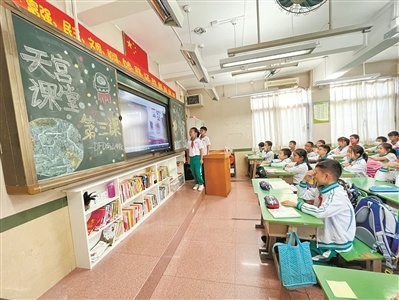 课堂上,新东小学的同学们不时露出惊讶的神色,发出阵阵惊叹:“这真是让人着迷的奇妙课堂啊!”“要是我也能上太空就好了!”“太空真是太神奇了!”