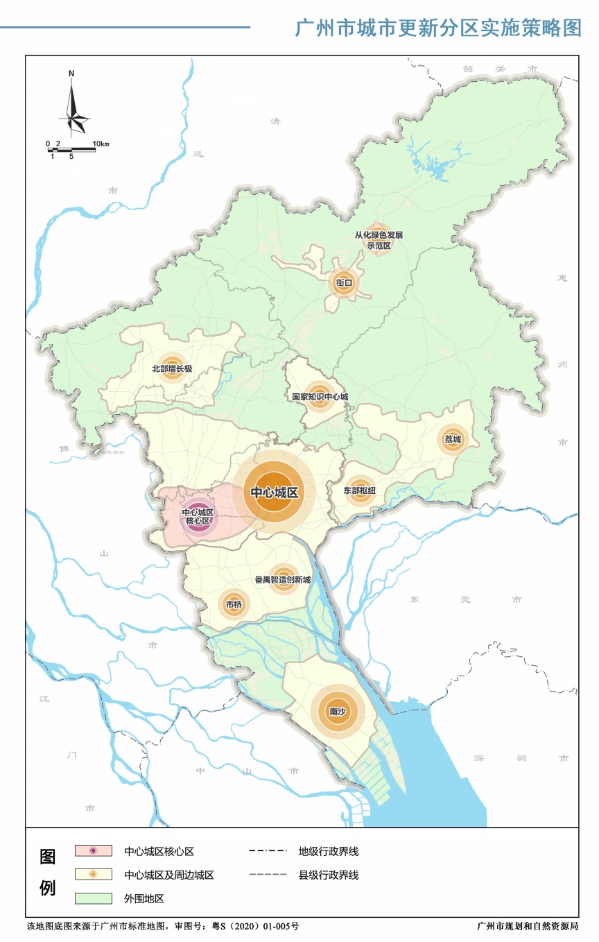 随着城市地域扩张不断向郊区扩散、再集中,广州形成了多中心的区域城市形态,这五大城市更新圈通过实施差异化战略,重塑区域定位,为广州城市更新指明方向。