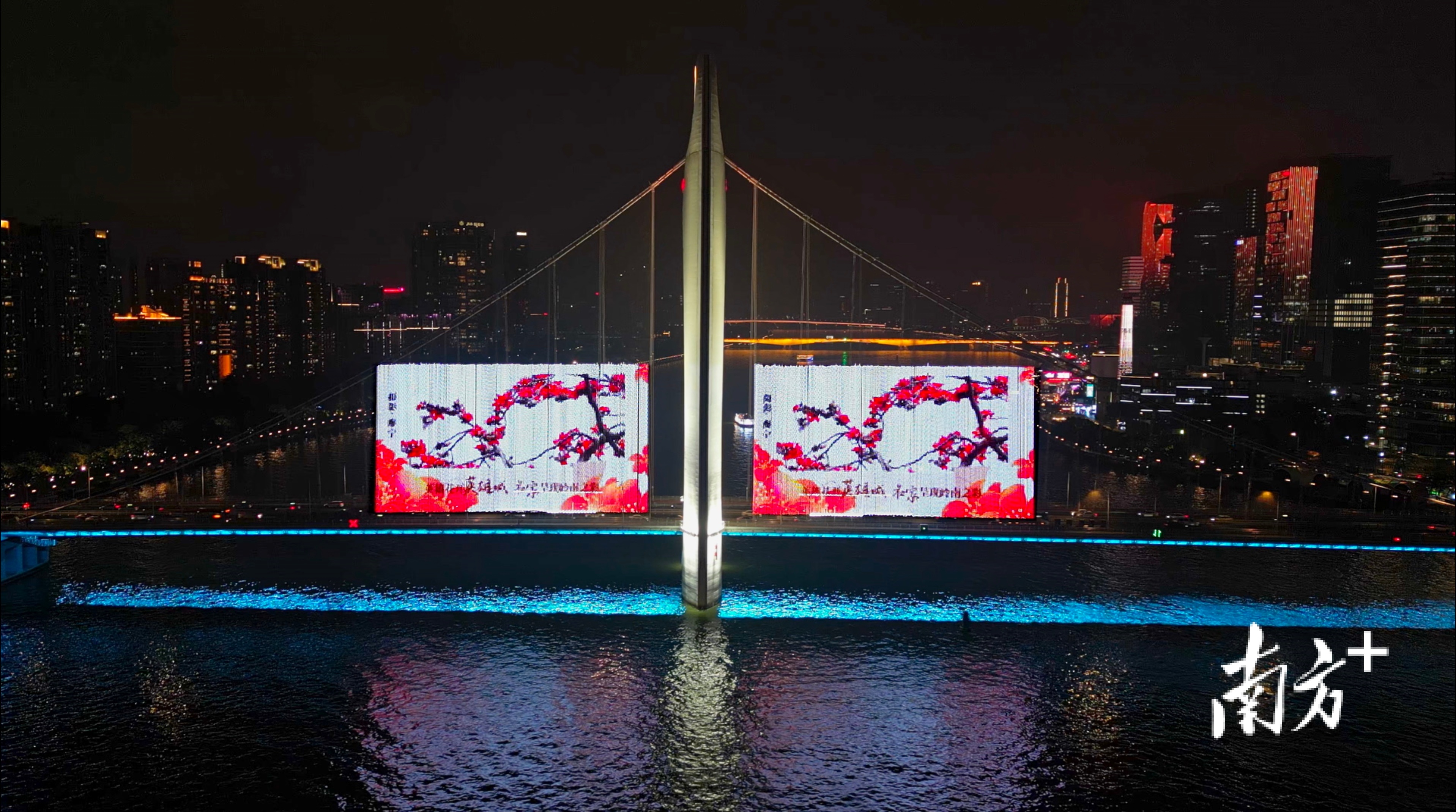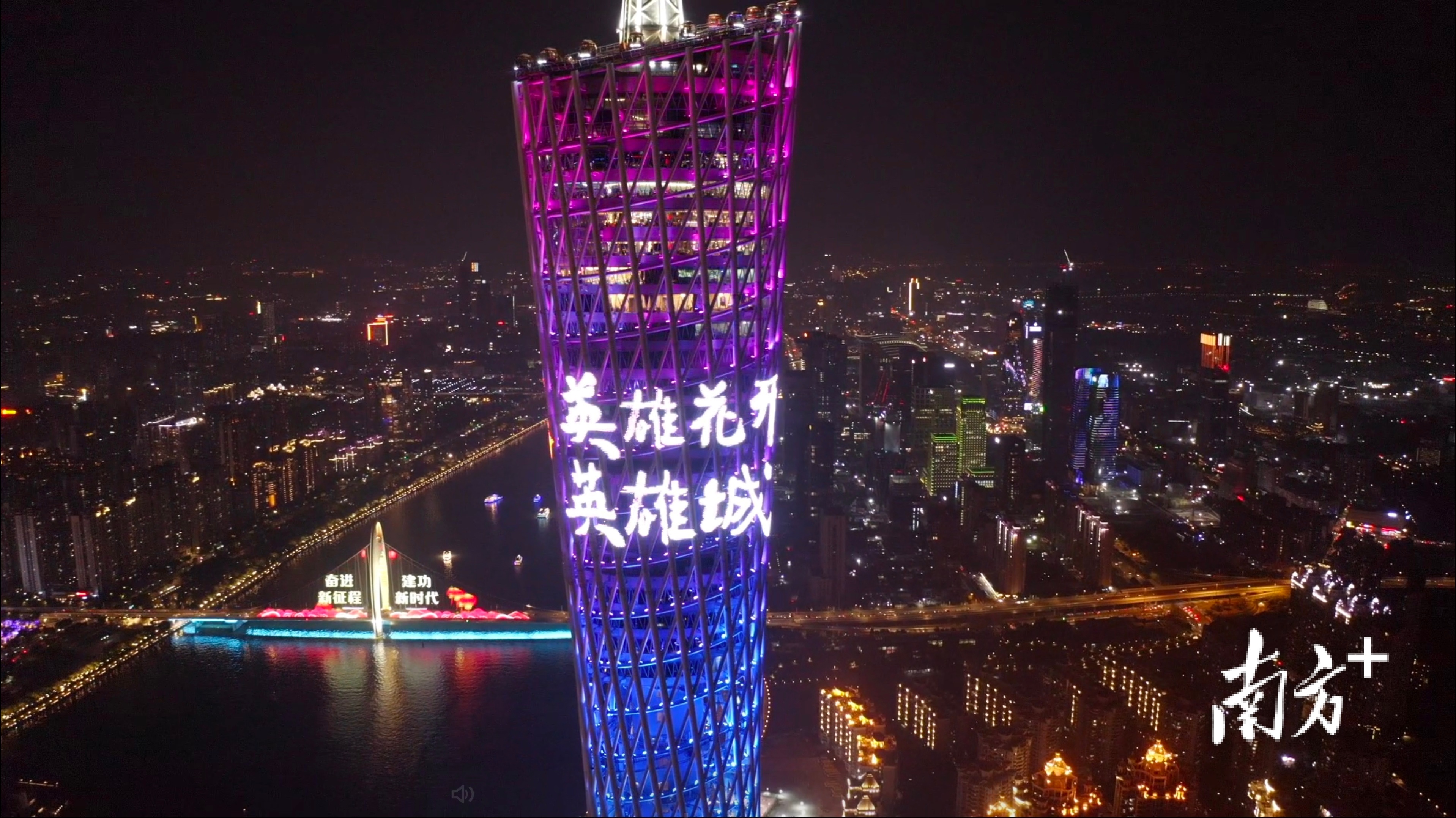 3月30日起,广州“英雄花开英雄城”系列活动组委会携手南方日报、南方+客户端联合出品的一段“英雄花开英雄城”主题灯光演绎点亮广州的夜。城市上空,处处流光溢彩,地标灯火璀璨;珠江两岸,朵朵木棉盛开,映红了一江水。