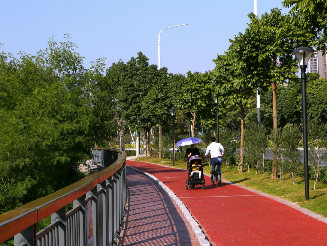 笔者走访看到,随着围蔽拆除,凤凰湖2号湖揭开了面纱。有不少市民带着小孩,一起漫步栈道,欣赏蕉门河中心区的湖光山色。