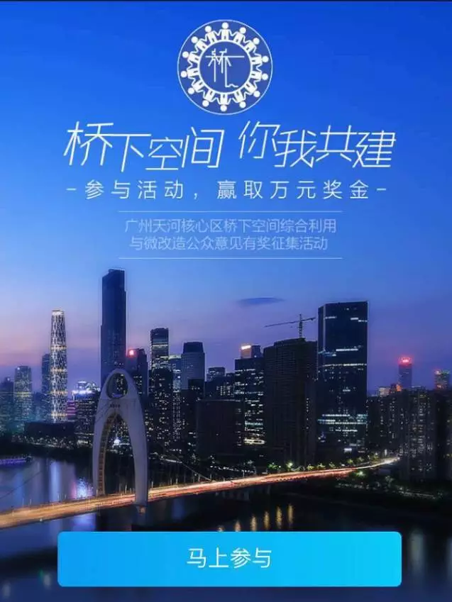即日起至11月底,天河区住房和建设水务局发起“桥下空间,你我共建”天河区桥下空间综合利用有奖征集活动,不设门槛,广纳民意,还准备了8万巨额奖金奖励其中的优秀方案~