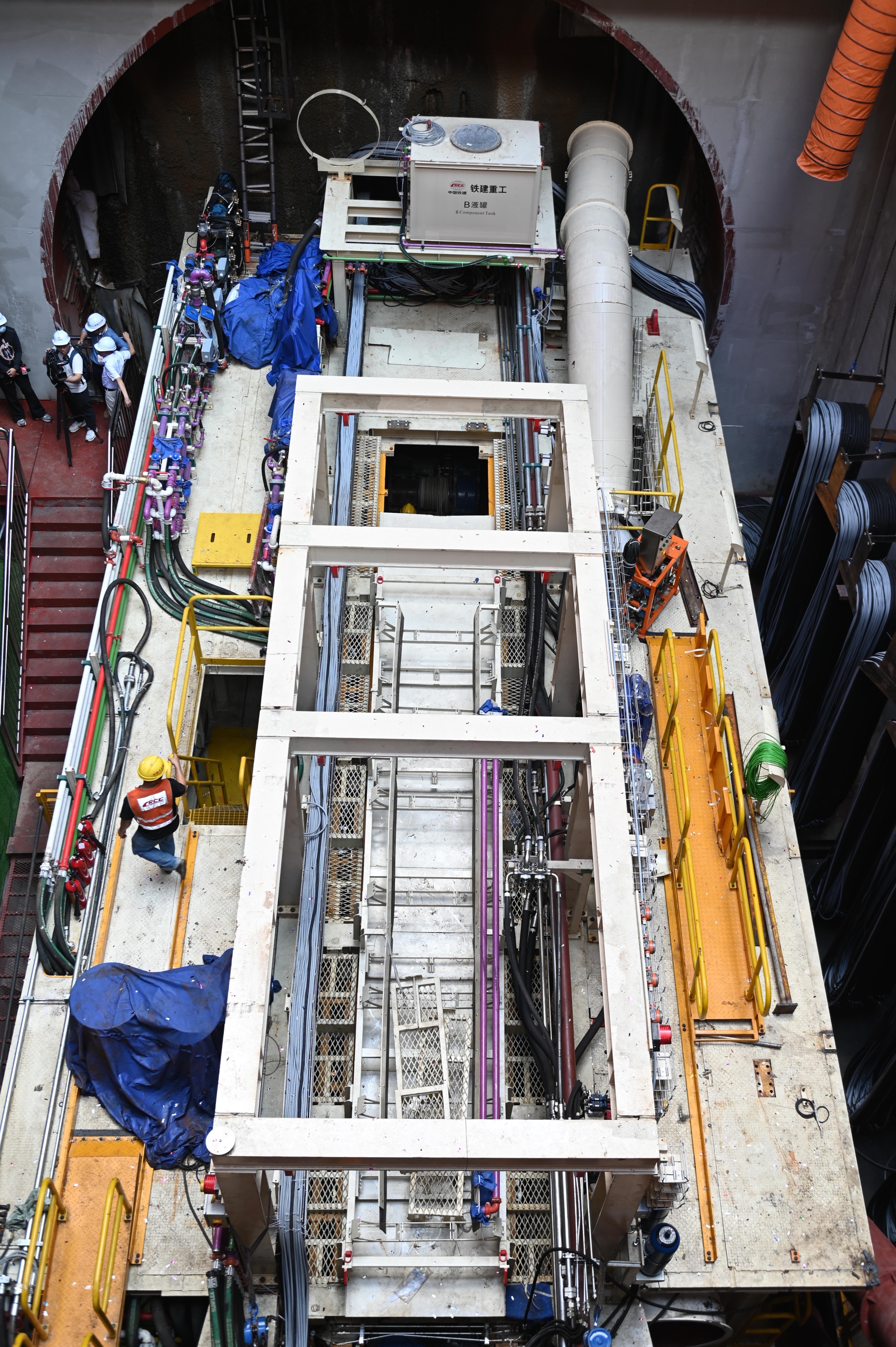 “此次始发的盾构掘进长度约2.6公里,大约只有26个月左右的盾构施工工期,整体工期较紧。”施工单位中铁建华南公司广花城际项目二工区(中铁十五局管段)执行经理曹东娇介绍,在不到1万平方米的该场地内要始发4台盾构,施工现场场地较为狭小,因此“铁兵广花6号”盾构机的后半部分台车放置在地面上,计划待刀盘前端掘进一定长度后再下井安装。
