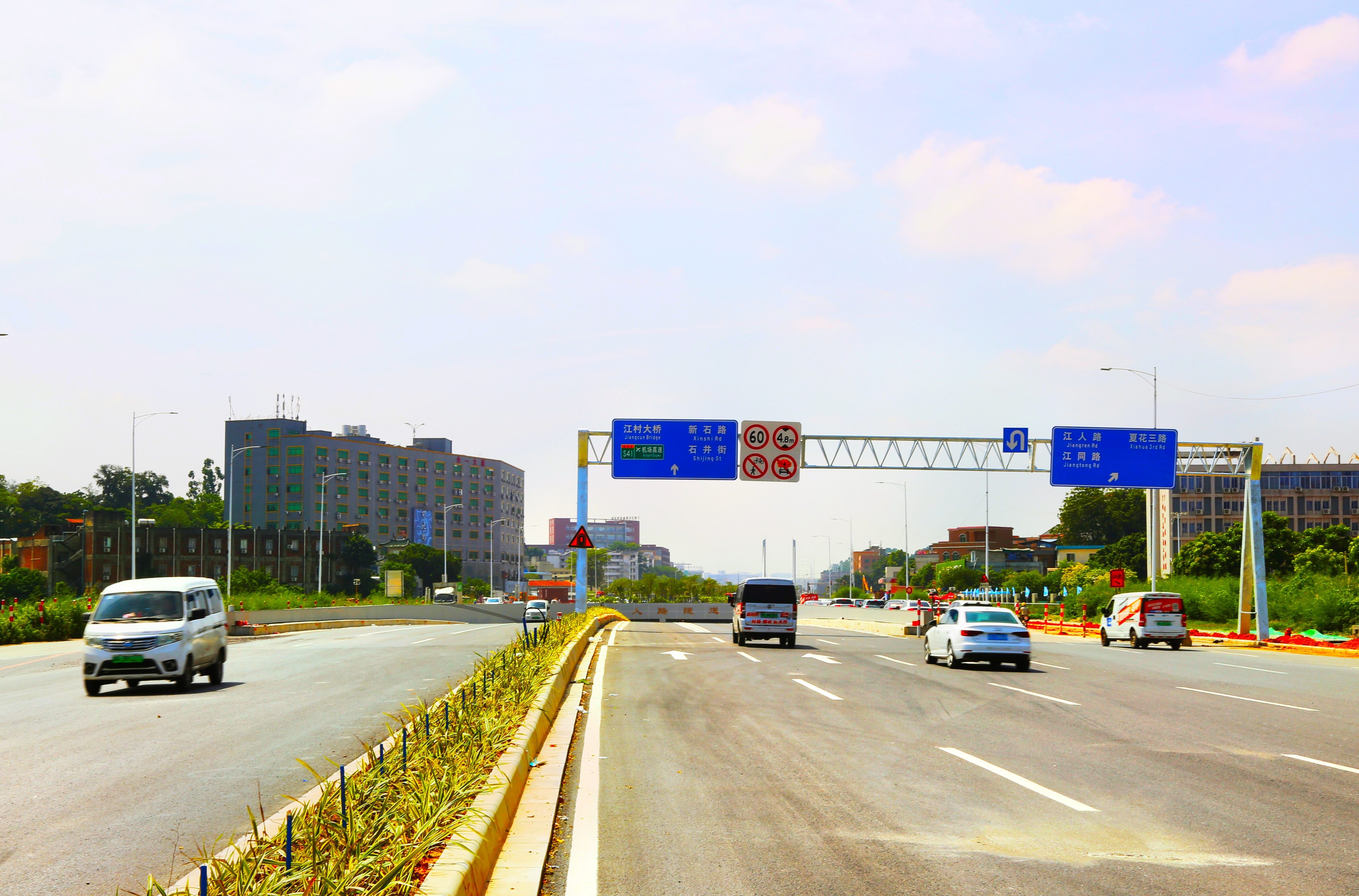 其中,新建的江人路下穿隧道,总长672m,双向6车道,设计车速为60km/h。隧道的竣工通车,完善了广花三路和江人路交叉立体交通系统,切实缓解了交通压力,为市民群众提供更加便捷、安全的出行环境。广花项目一二标段,全线共配建11座人行天桥,本次开放通行的人行天桥为3号、4号、5号、6号、7号、8号、8-1号、9号、10号人行天桥(其中2号人行天桥已在首批节点工程开通),人行天桥的开放通行,既保证行人过街安全,又提高了车辆通行效率,有效缓解交通拥堵,为广花路快捷化创造了有利条件。