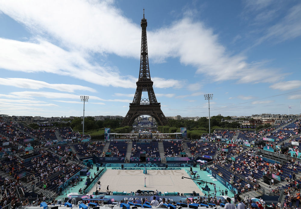 在场馆的选取上,巴黎奥运会采用了许多历史悠久、远近闻名的地标作为比赛用地——沙滩排球在埃菲尔铁塔附近,击剑、跆拳道比赛在巴黎大皇宫,协和广场是三人篮球、霹雳舞、滑板等新兴项目的比赛场地,凡尔赛宫附近举办了马术、现代五项比赛……