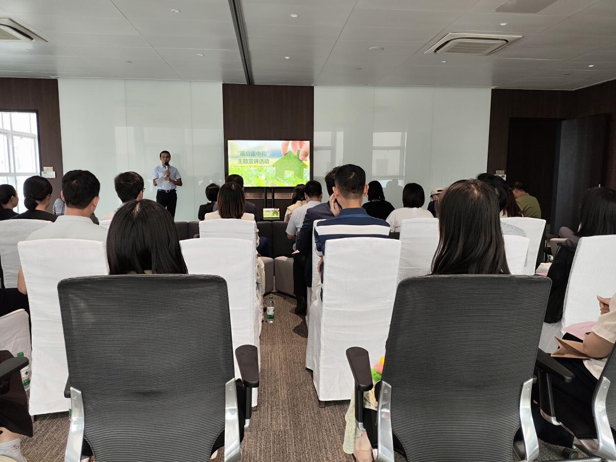 为了广泛发动倡导绿色低碳社会新风尚,广州市商务局和生态环境局开展“展会碳中和”主题系列宣讲活动,多次赴会展企业、行业协会,现场宣讲碳中和理念,探讨交流展会碳中和典型案例经验和落地途径,让绿色办展、低碳办展的理念共识迅速凝聚。