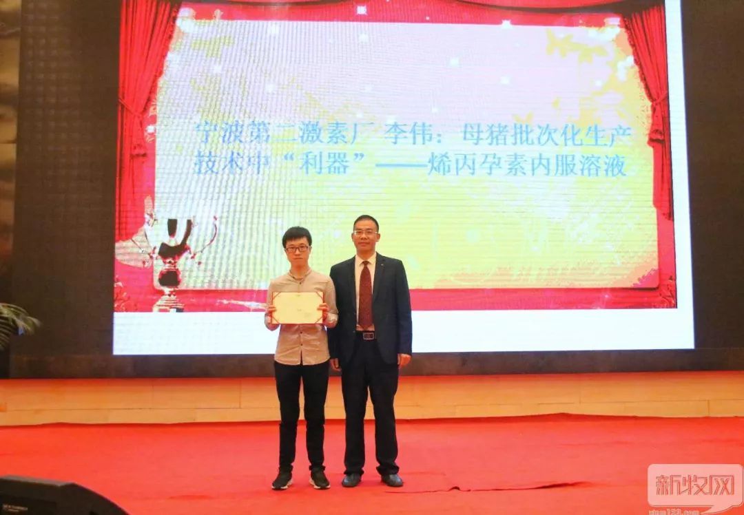 在第13届AI会期间还举办了AI领域2018年度优秀人物与集体表彰,以及“秀博”杯优秀论文评选颁奖。宁波第二激素厂总经理岑桂英获得年度风云人物、宁波第二激素厂获得优秀供应商、研发部副经理李伟的《母猪批次化生产技术中“利器”——烯丙孕素内服溶液》获得论文一等奖、猪技术服务部大客户经理刘晓坤的《打好非瘟防控保卫战-猪场批次化生产与数据分享》获得论文优秀奖荣誉。