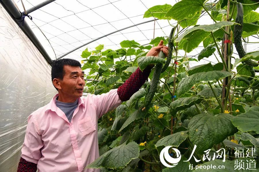 “平时,我们一天要摘收黄瓜600多斤,订单多的时候每天要摘收1000斤左右。”春节前夕,福建南靖县山城镇下戴村豪康果蔬专业合作社社员戴大炳在蔬菜大棚忙着摘收黄瓜。