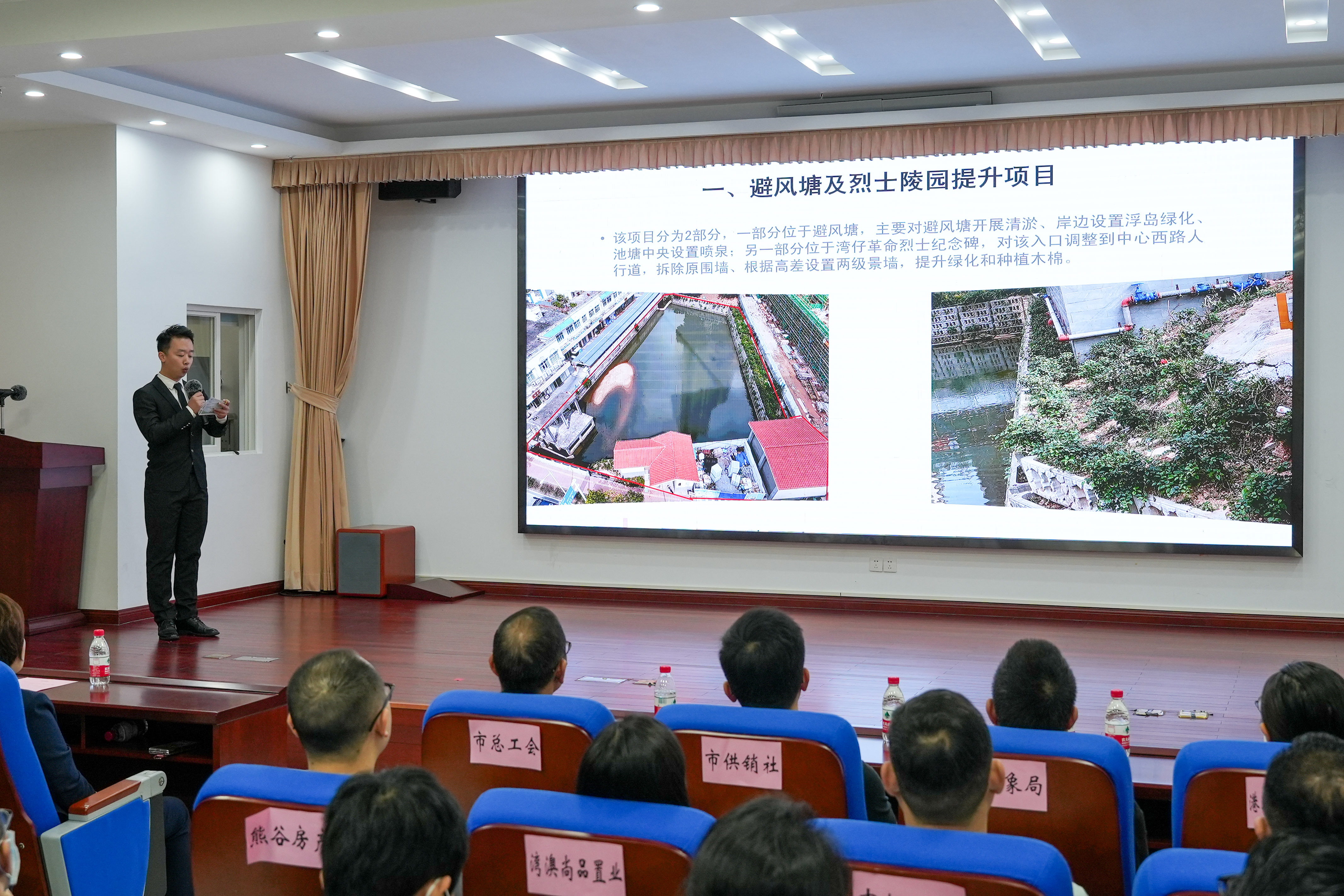 听完项目介绍后,爱心企业、单位积极响应,踊跃认捐认领,认捐金额达97万余元。其中,珠海市中泰投资有限公司认捐避风塘及烈士陵园提升项目80万元,珠海熊谷房产发展有限公司认捐华磁路靠近天一居地段提升项目7万元,珠海中富工业集团有限公司捐赠资金3万元。本次活动募捐所得的资金、苗木将全部投入美化提升项目中,除项目所需资金外,剩余的款项将用于开展后期的养护管理工作。
