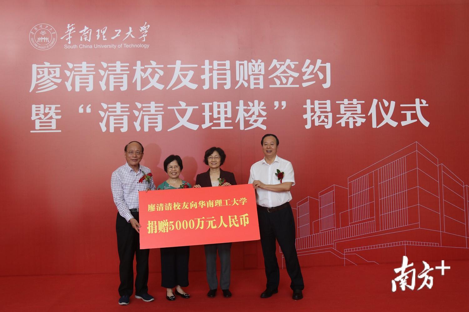 18日,华南理工大学接受2012年该校60周年校庆以来数额最高的一笔校友捐资。该校化工系校友廖清清捐赠母校5000万元,用于支持学校高层次人才培养和学校基本建设和发展。