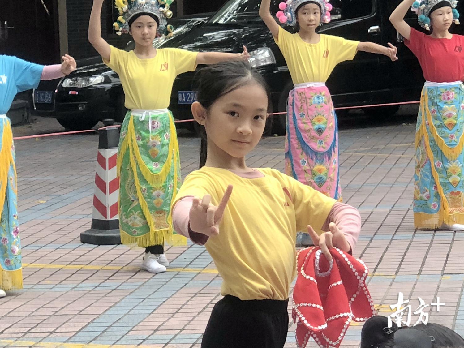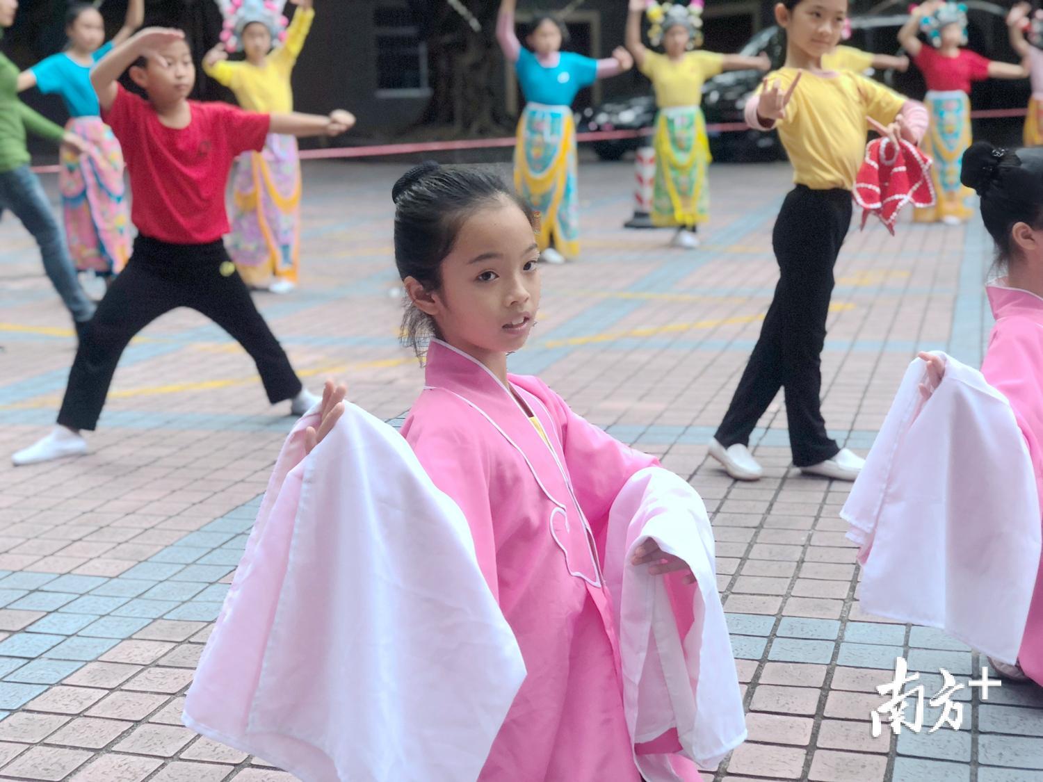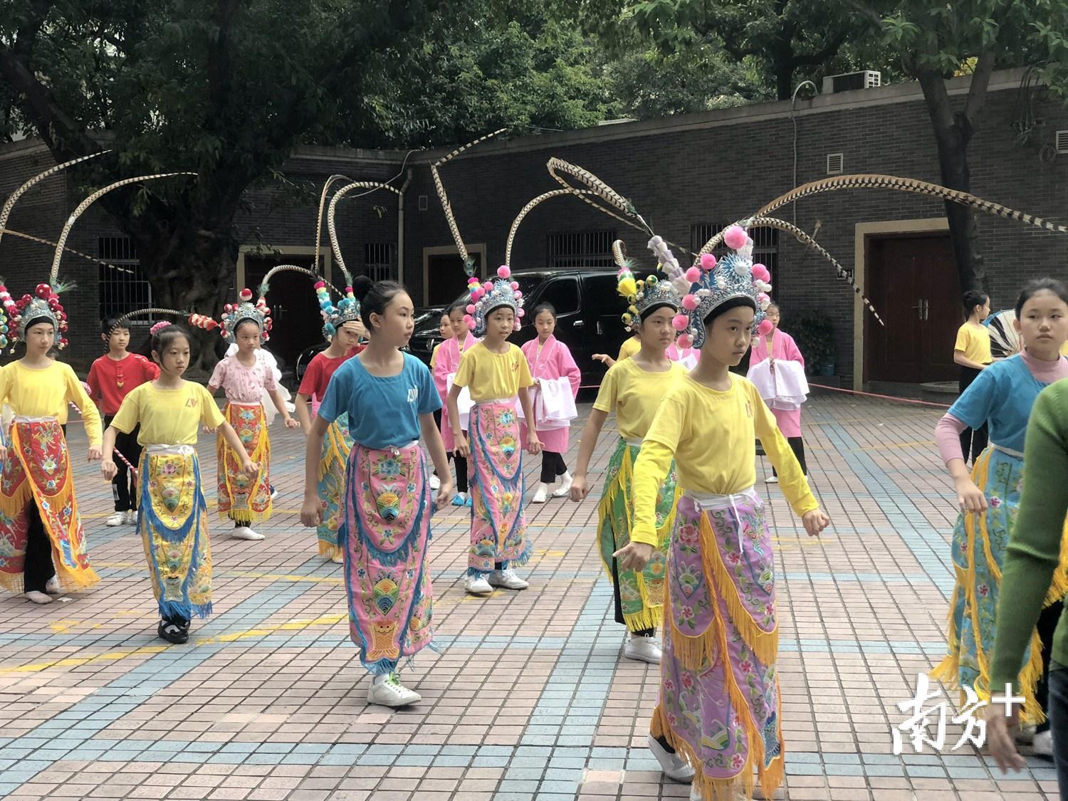 “眼神!走位!都打起精神来!”11月3日,周六,荔湾区青少年宫的广场内用绳子围出一个长方形区域,一个粤剧戏台就搭起来了。近50个孩子简单“扮”上,眼神和动作毫不含糊,他们正在为10日在广东省粤剧院的表演进行排练。