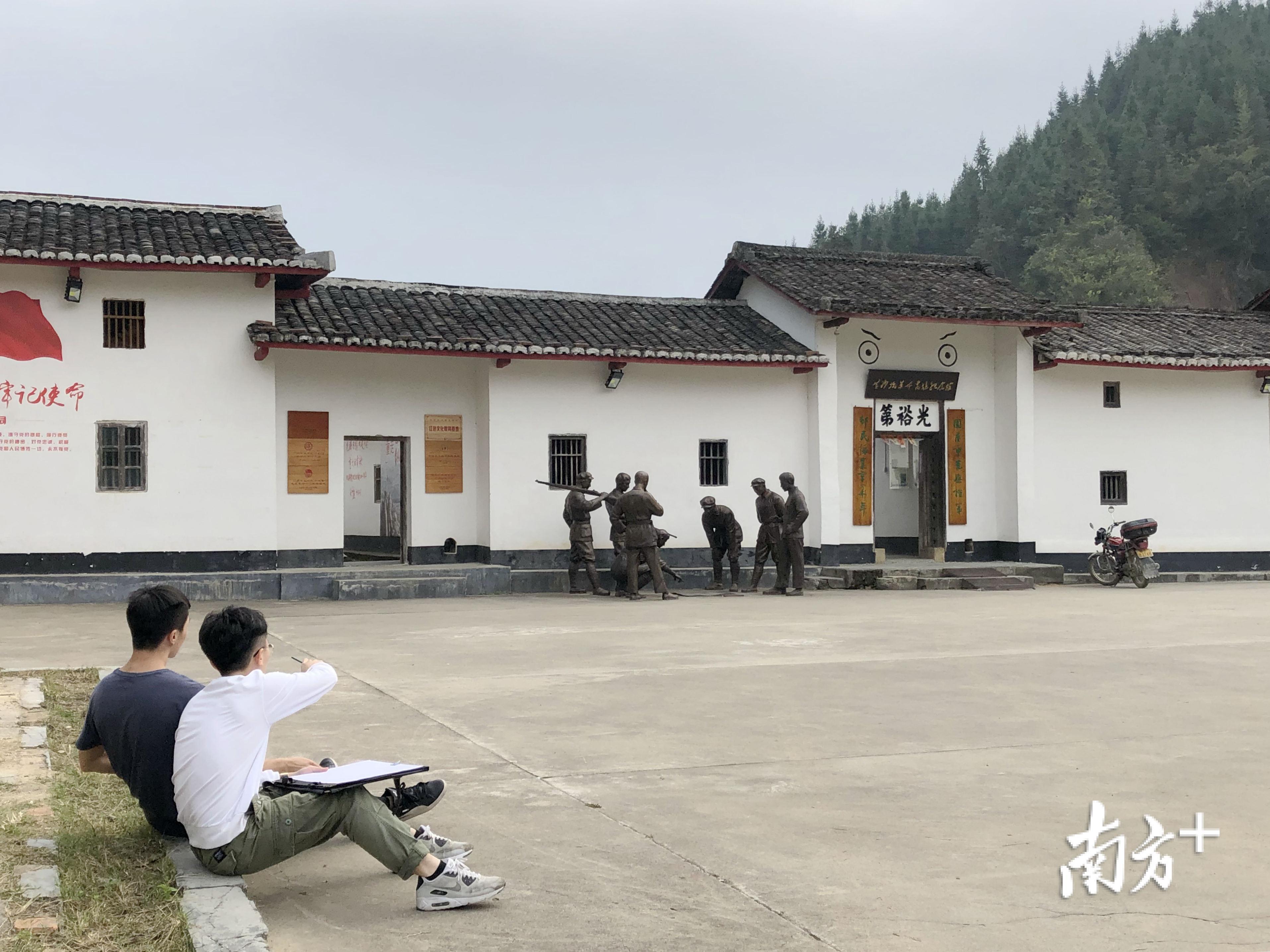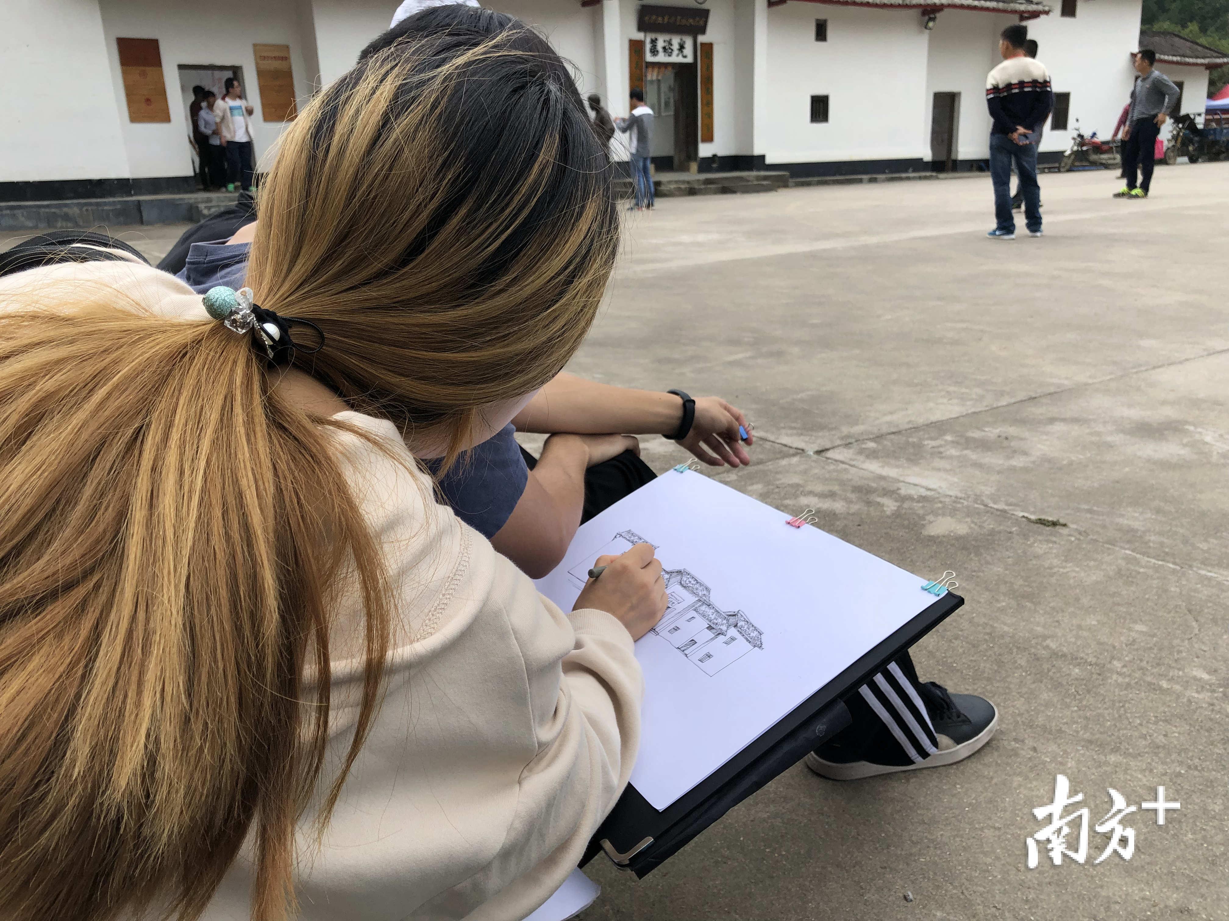 一大早,建筑设计专业学生肖友宏就带着画板和画笔来到了黄沙坑革命旧址纪念馆。不一会儿,白墙灰瓦在他笔下便有了雏形,老师胡玲玲不时俯下身,对学生的写生作品进行指导。