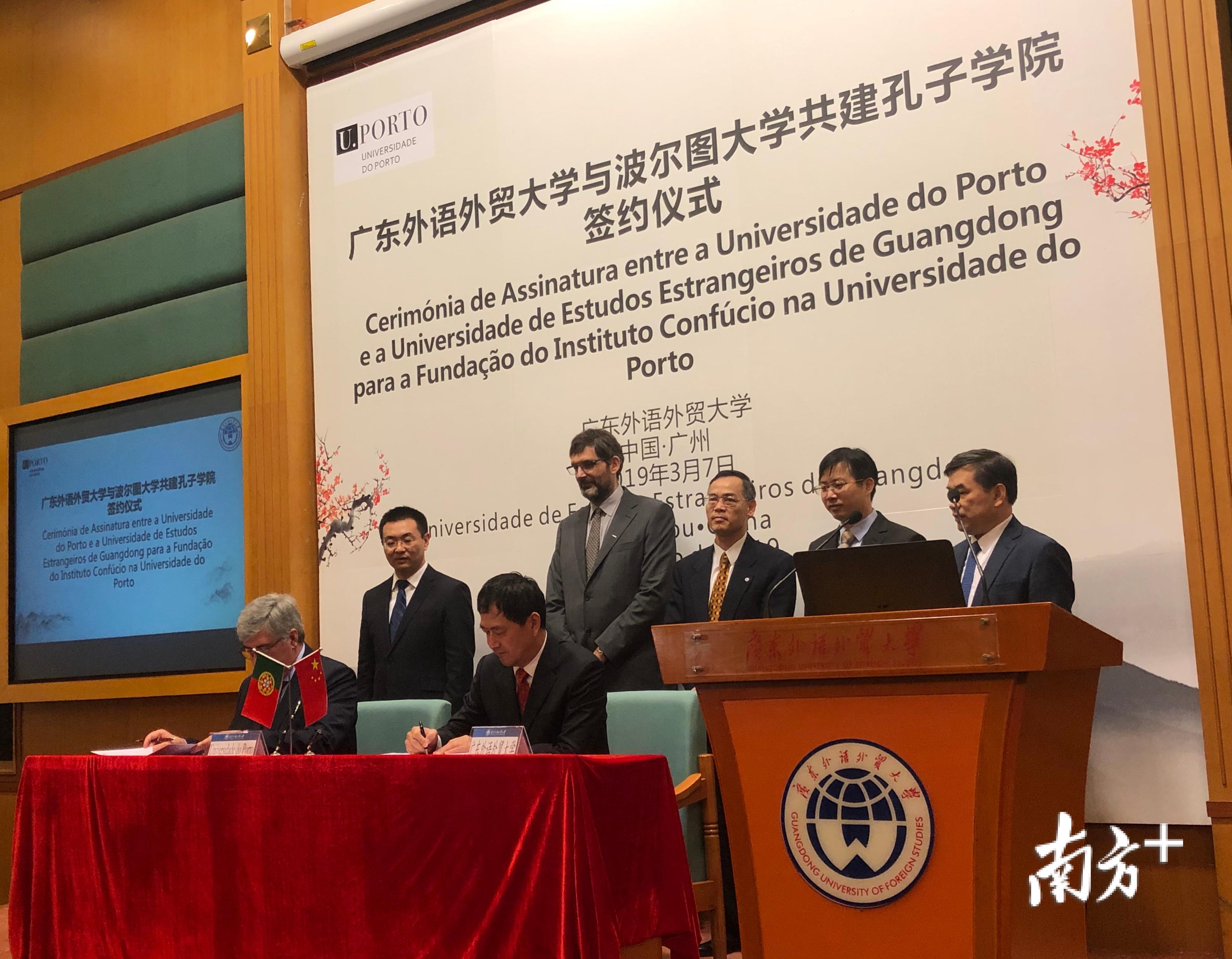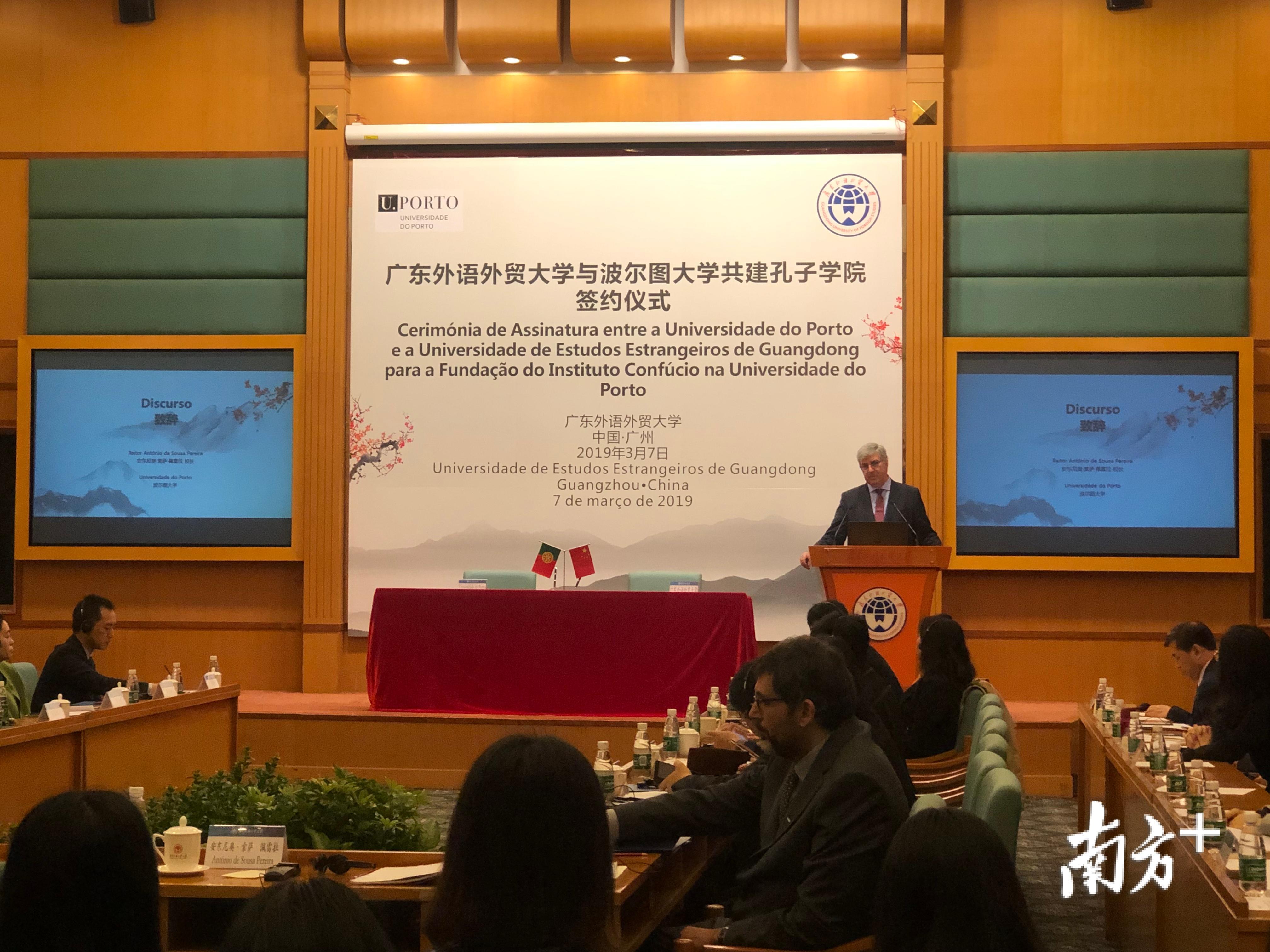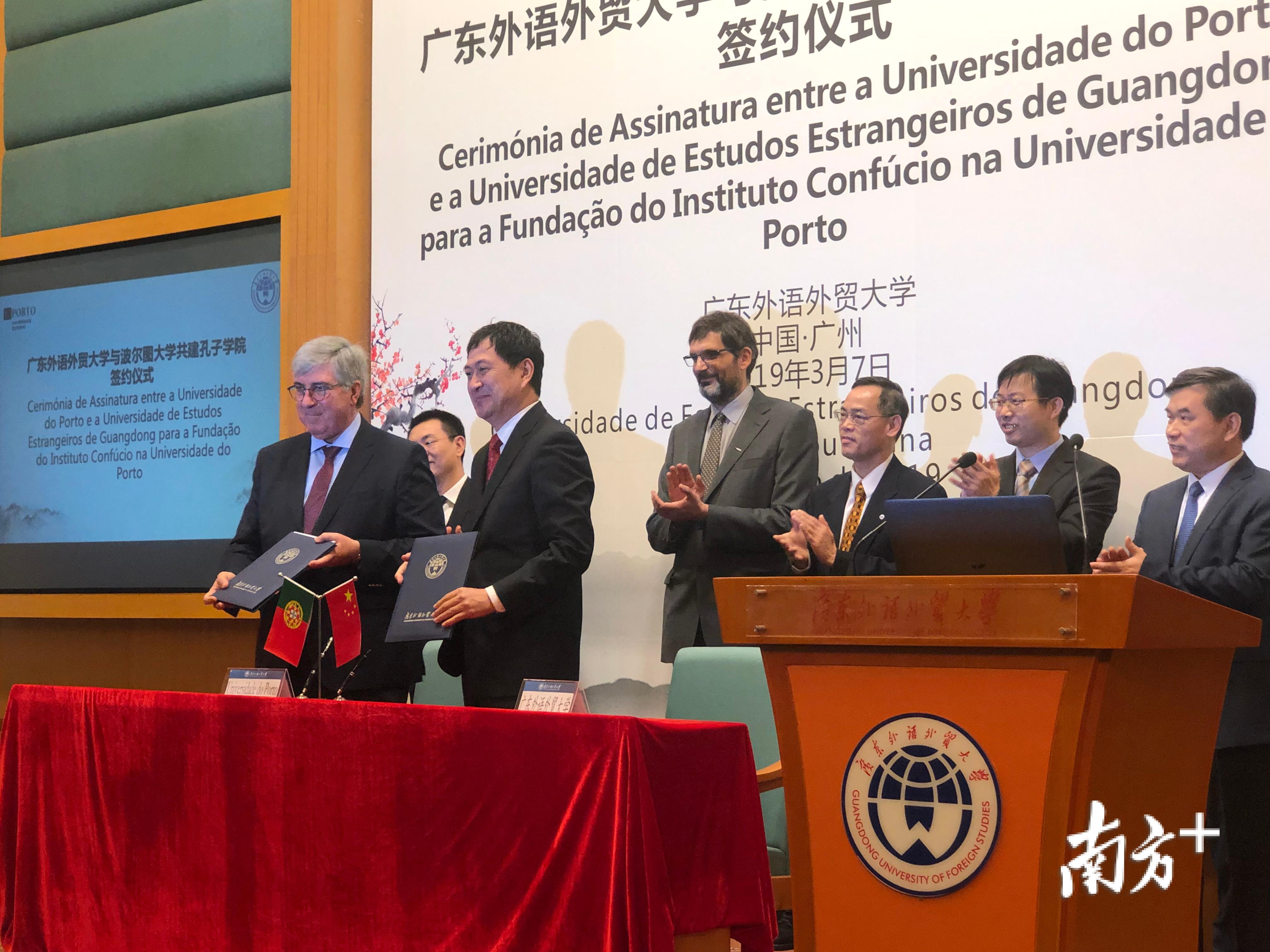 据悉,广东外语外贸大学自2006年起先后开设了6家孔子学院和孔子课堂,是我省在海外建设独立的孔子学院(课堂)数量最多的高校。该校葡萄牙语专业成立于2009年,与葡萄牙、巴西、澳门等多所高校建立了多层次广泛的合作,10年来已培养140名毕业生,目前有100名在读学生。