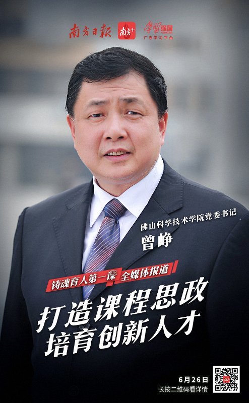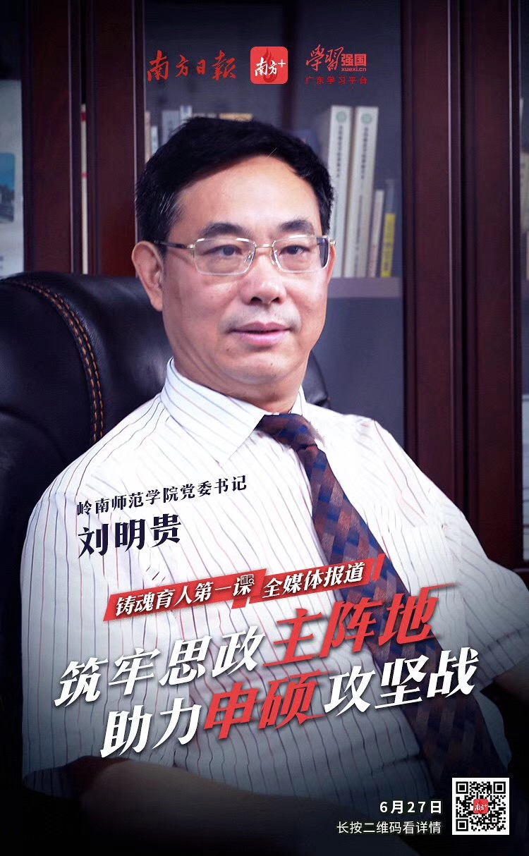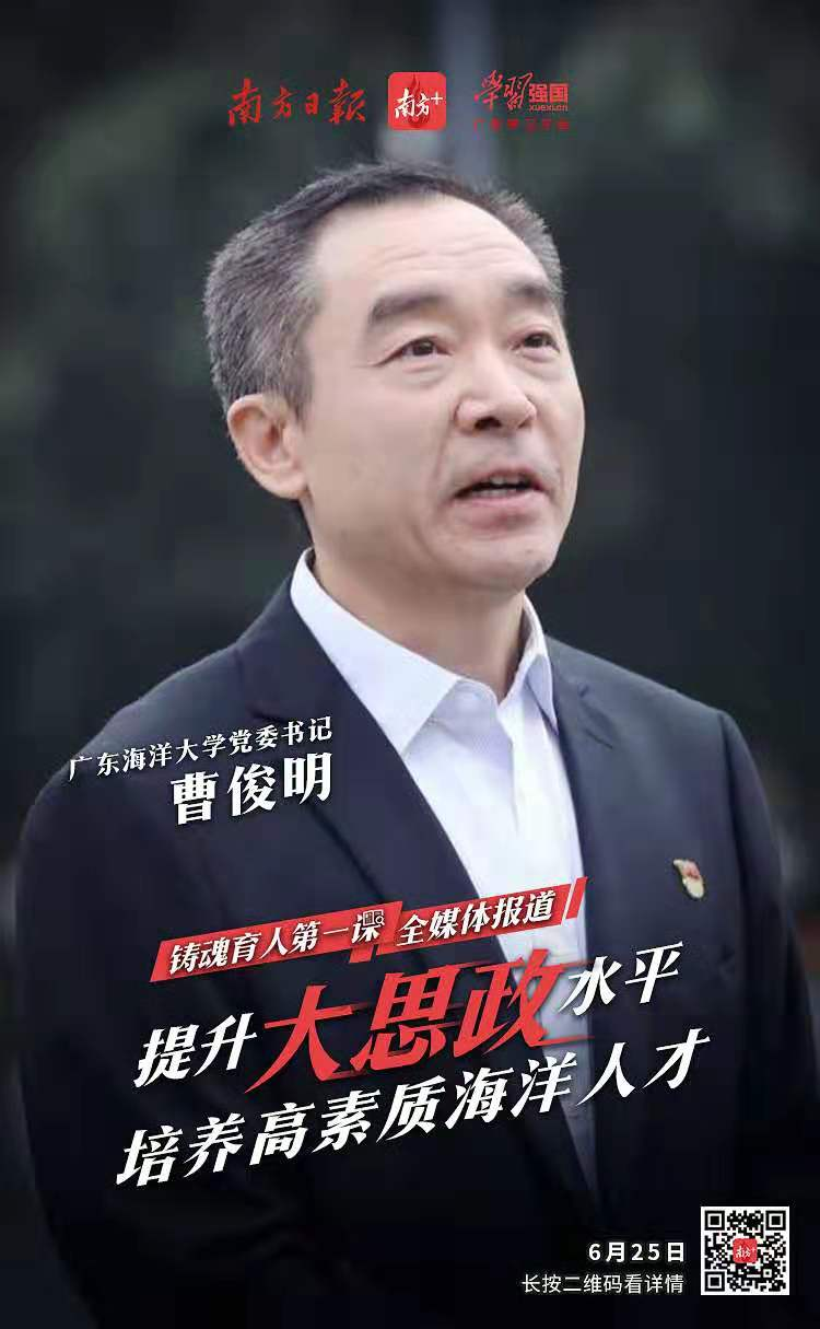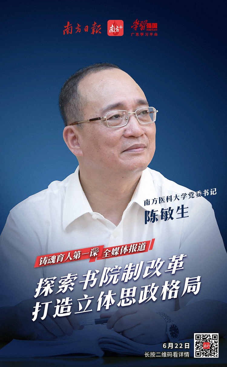 6月20日起,南方日报、南方+客户端和广东省教育厅联合推出“铸魂育人第一课”全媒体报道,深入走访各高校,采访党委书记或校长,一起谈立德树人、铸魂育人,给学生心灵埋下真善美的种子,帮学生扣好人生第一粒扣子。