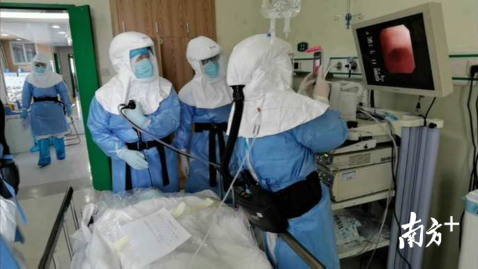 在36天的病房医疗工作中,佛山医疗二队与武汉市第一医院医疗团队紧密合作,携手抗疫,如在3月12日,佛山医疗二队便主动联系武汉市第一医院,并于次日双方合作,为2名分管病人开展支气管肺泡灌洗术,也是佛山医疗队中最先运用该项技术的医疗队。