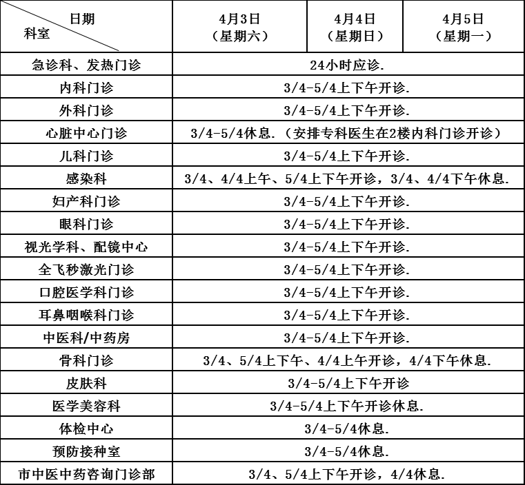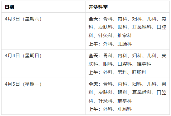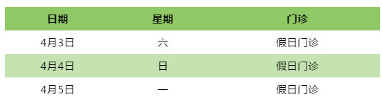 清明假期期间正常开诊,包括总院、城南分院、同济西门诊部。