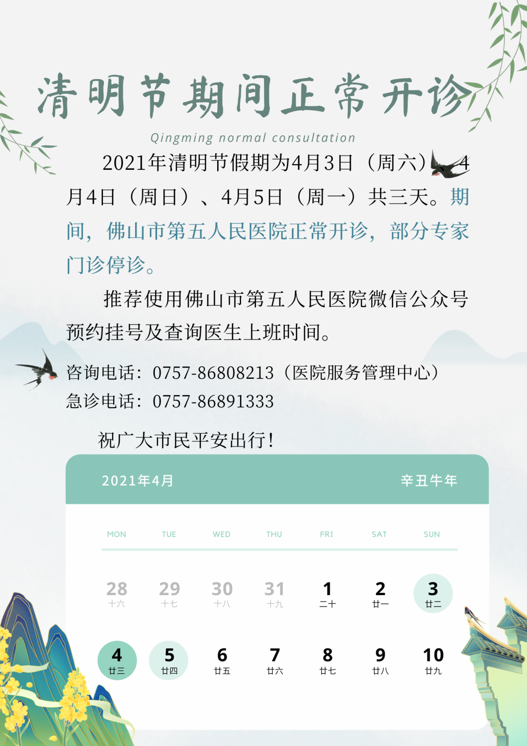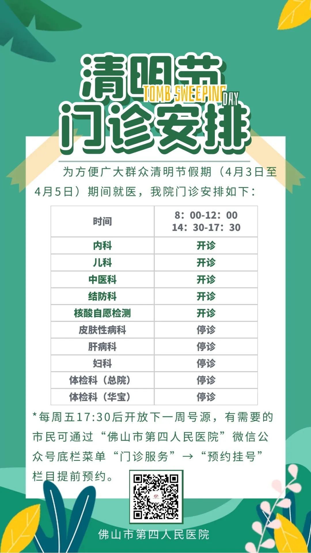 佛山各市直医院清明节门诊安排出炉,就诊别白跑!