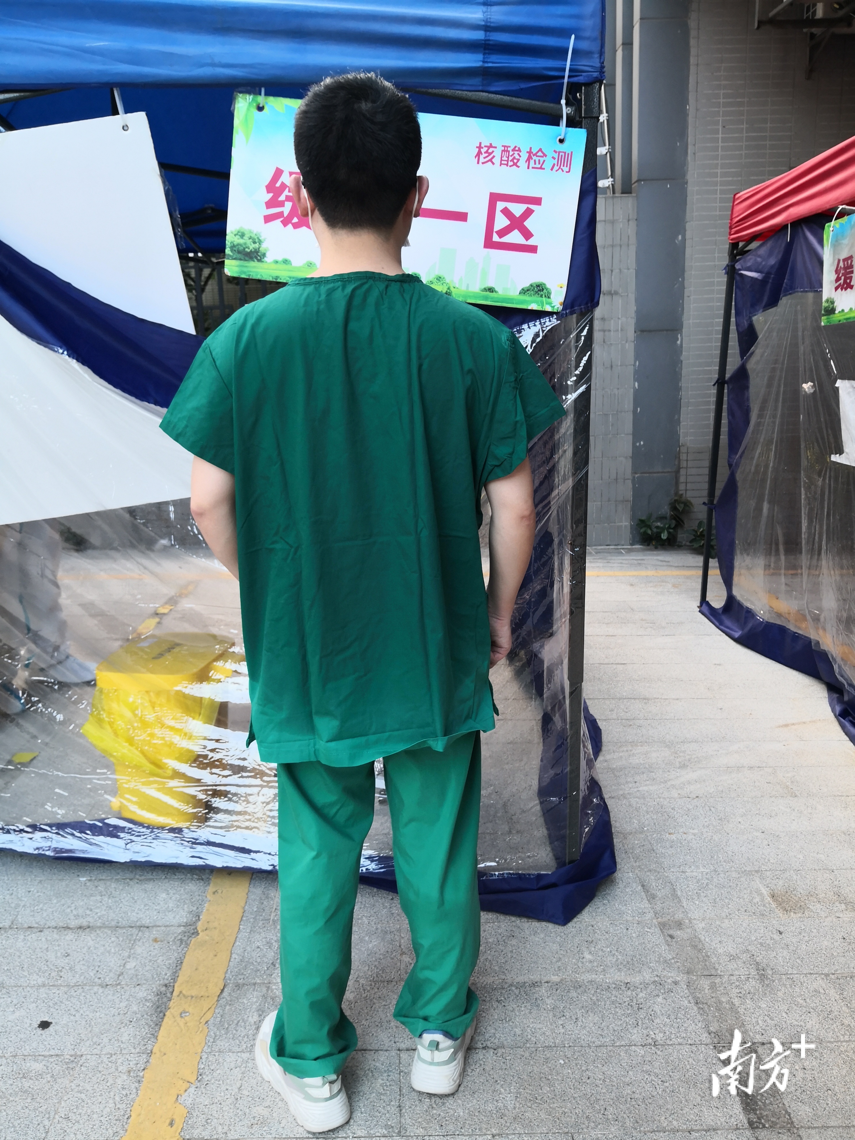 手部消毒、取棉签、采样、掰断棉签、放进试管、旋上盖……他们一遍遍地重复着手中的动作。梁琪琪是佛山市第二人民医院的护士,去年刚入职,她已经数不清多少次穿上“大白”走在最前线。炎热的天气,穿着密不透风的防护服在大太阳下工作2~3小时,每每脱下防护服里面的洗手衣都已经被汗水浸透,“每当我觉得自己快支撑不下去的时候,就会在心里默默地告诉自己再坚持一下,再坚持一下就好了”,梁琪琪说。