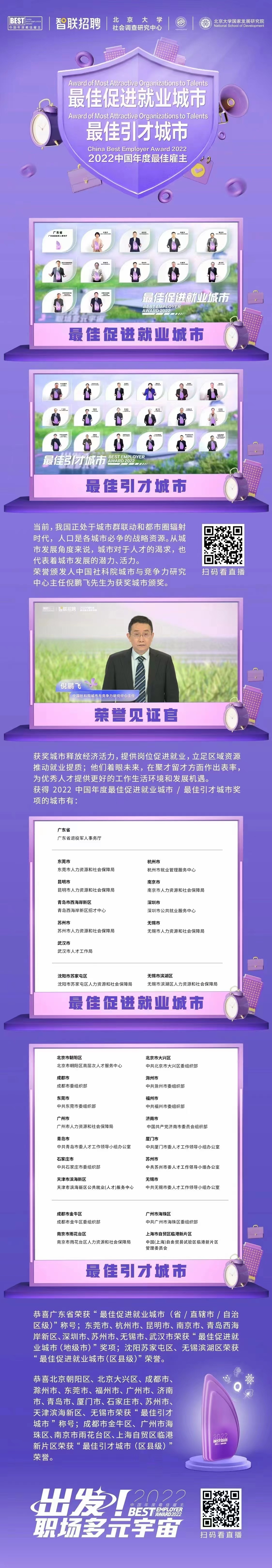 “中国年度最佳雇主”是一项中国最佳雇主的评选活动,由中国领先的人力资本生态价值链平台智联招聘发起,旨在以独立客观的立场,通过专业科学的调查评选,发现中国雇主品牌标杆企业,并挖掘这些最佳雇主在企业管理和人力资本领域的发展趋势,从而为更多企业在管理及雇主品牌战略方面提供咨询和服务。同时通过洞察职场需求变化,为求职者提供“好雇主”“好工作”的有效标准,进一步加强雇主与雇员的相互协作,实现雇主与雇员的“双赢”发展。评选维度,围绕城市在人才就业与企业扶持等方面的政策、法规、制度、活动与成果等。
